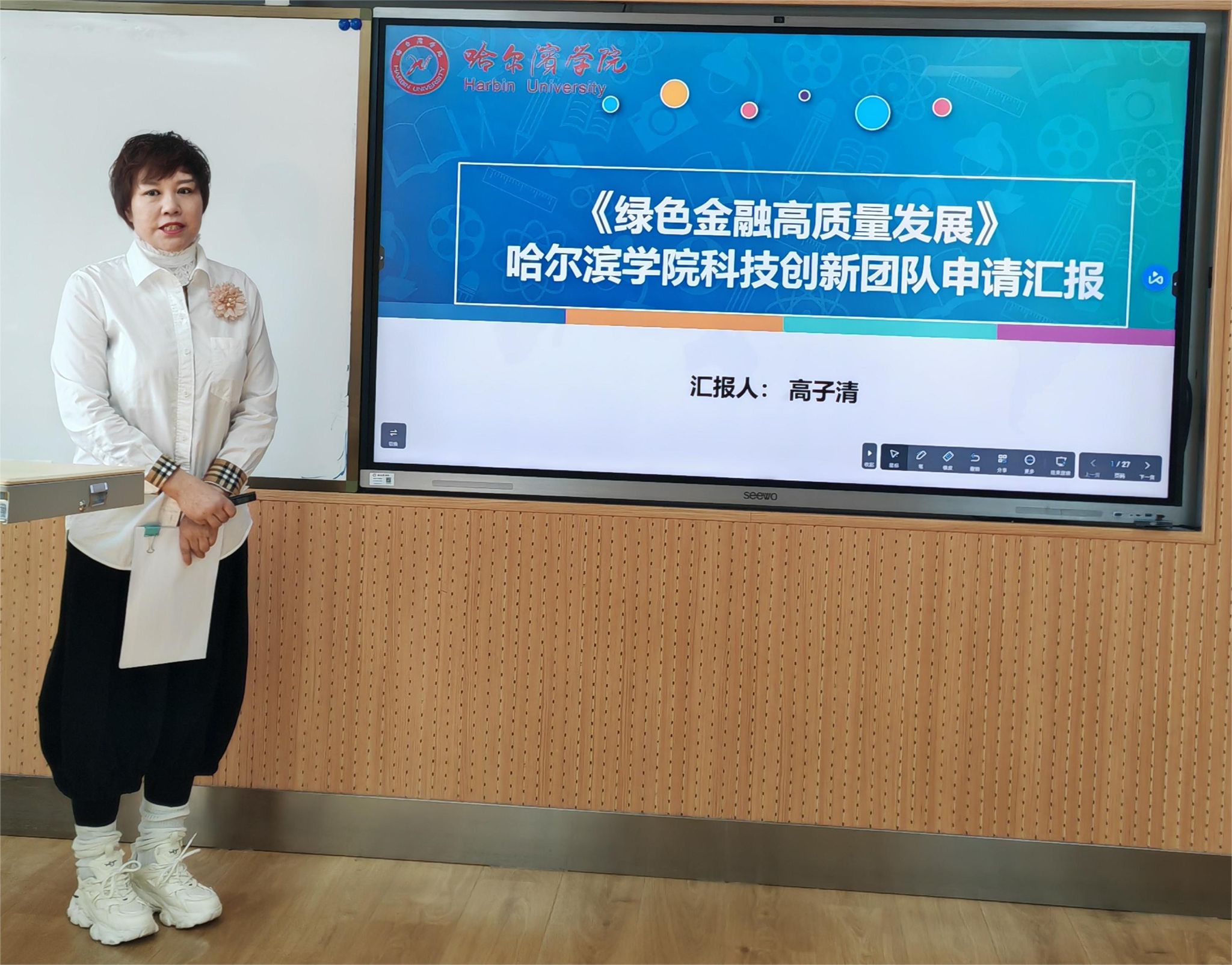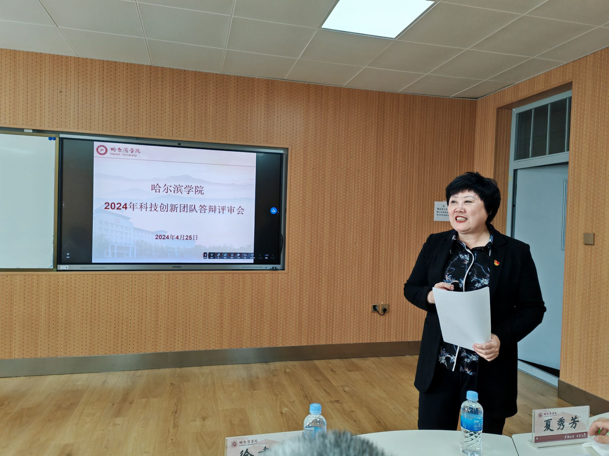(文/王睿博)按照《哈尔滨学院关于加强学科建设的若干意见》《哈尔滨学院科技创新团队和青年博士创新团队管理办法》部署要求,为促进学校学科交叉融合,鼓励教师围绕亟待突破的重点领域和关键问题开展跨学科研究,产出高水平原创科研成果,我校 2024 年科技创新团队答辩评审会于 4 月 25 日下午在 5311 教室举行。哈尔滨工程大学经济管理学院博士生导师徐建中教授、东北林业大学马克思主义学院博士生导师李爱琴教授、东北农业大学食品学院博士生导师夏秀芳教授、黑龙江工程学院艺术与设计学院副院长刘辉教授担任本次评审会答辩评审专家,会议由科技处处长李惠男主持。