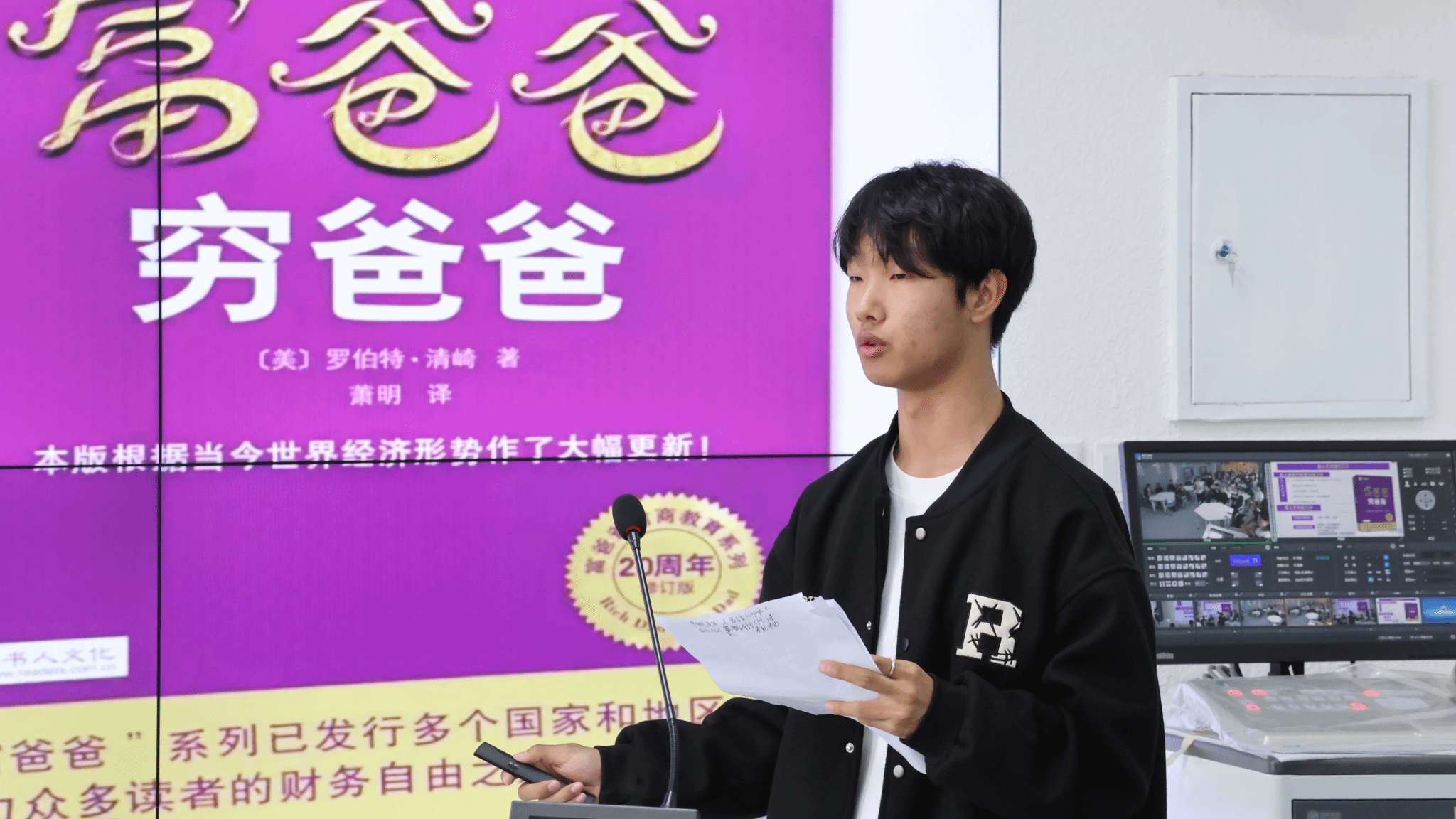 金融系的陈浩然同学分享的是《富爸爸穷爸爸》,他认为这本书不仅仅是一本关于理财的入门书籍,更是一本启发人生智慧的宝典。作者通过列举富爸爸和穷爸爸两种完全不同的人生观念,旨在告诉大家人生只是一个选择的过程,而决定一个人命运的,关键在于自己是否拥有能够做出正确选择的智慧。我们要从经济学的角度去思考人生,拥有经济学智慧,就能让自己在人生中运筹帷幄。