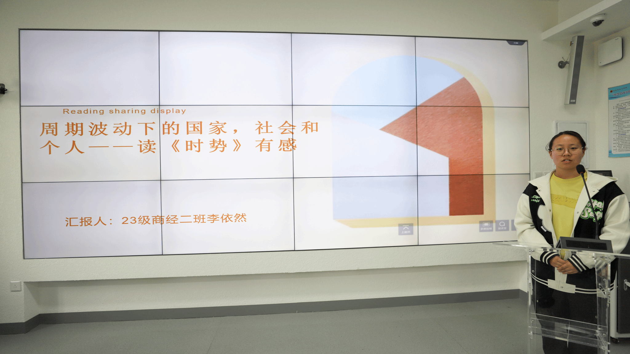 商务经济系的李依然同学分享了畅读《时势》给她带来的收获。她坚信,在学习的征途上唯有不懈的努力和深入的思索,才能真正实现知识与理解的交融。李依然的阅读之旅,不仅仅是对文字的简单翻阅,而是与作者进行心灵的对话,助她在复杂多变的时局中,学会审时度势洞察先机,进而给予她深刻的学习经验。