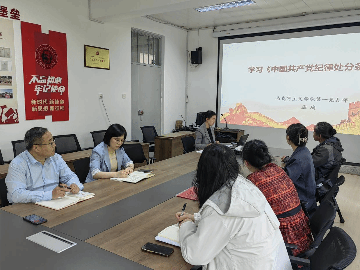 5月15日,马克思主义学院党总支书记孙芳组织学院全体党员集中学习了《中国共产党纪律处分条例》的相关内容。孙芳书记介绍了《条例》修订的背景与地位,从《条例》修订的重要意义、《条例》的重点内容、抓好《条例》的贯彻执行等方面,结合工作实际就新修订的条例》进行了全面详细的解读。随后,她传达了学校党纪学习教育工作部署会的会议精神,引导学院全体党员要站在党和国家发展全局高度,深刻感悟全面从严治党取得的历史性开创性成就,切实把思想和行动统一到习近平总书记关于党的建设和党的自我革命的重要思想上来,统一到党中央关于全面加强党的纪律建设的决策部署上来,用心学纪、准确知纪、对标明纪、严格守纪。