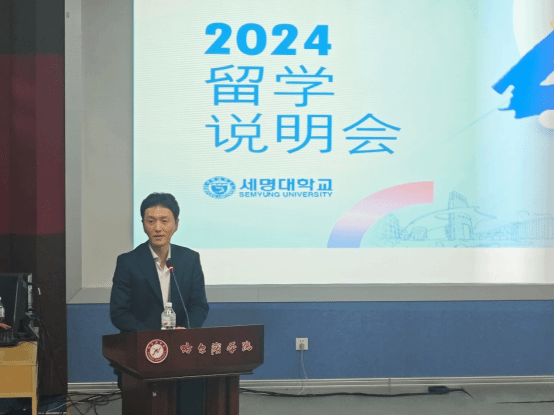 推荐会上,金炳俊介绍了世明大学的基本情况,详细说明了项目学生到世明大学读取研究生,给学生提供的优惠政策、学习环境、寝室条件和课余活动等情况。同学们对金处长的介绍表现出了浓烈兴趣,与金处长进行了深入交流。