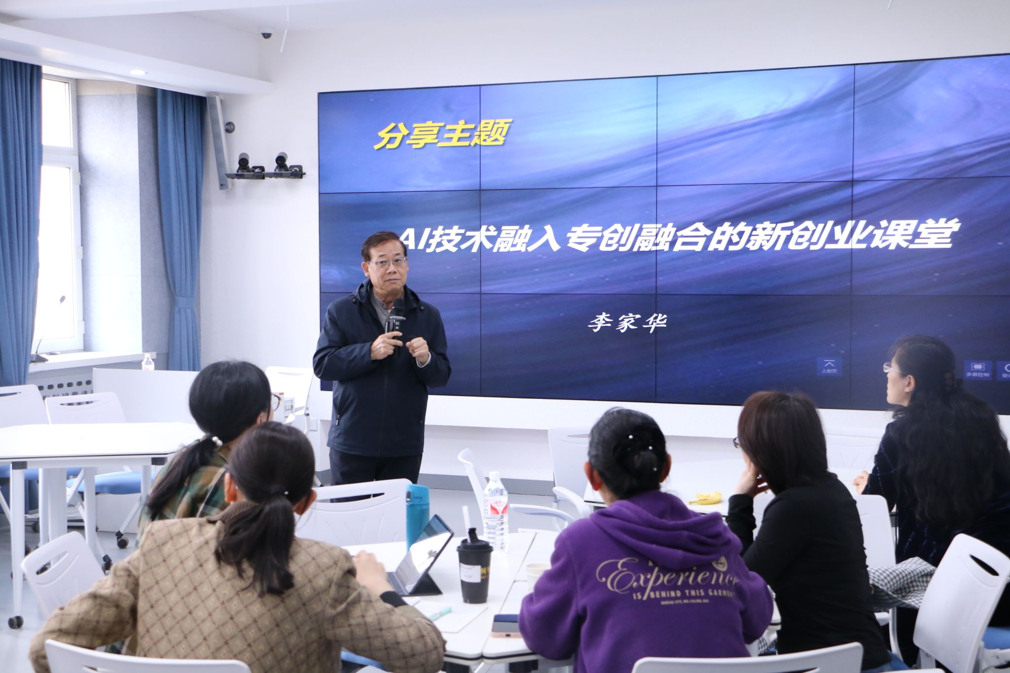 全国大学生创新创业联盟副理事长李家华教授做题为《AI技术融入专创融合的新创业课堂》专题讲座