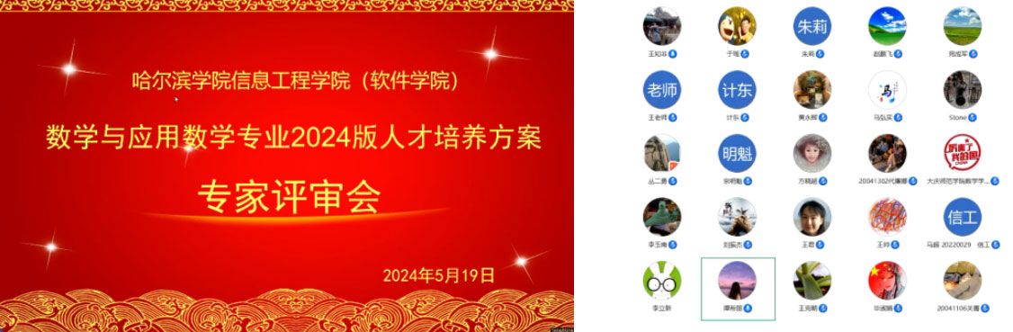 5月19日上午,数学与应用数学专业邀请了北华大学教务处处长谭希丽教授、大庆师范学院数学科学学院院长高扬教授、哈尔滨师范大学数学科学学院副院长王涛教授、哈尔滨市第20中学校长王宇先生、哈尔滨市博雅学校校长李立新先生,参加了数学与应用数学专业2024版人才培养方案校外专家评审会。与会专家一致肯定了数学与应用数学专业人才培养目标定位准确、毕业要求设置合理、课程体系设置符合数学专业师范类人才培养要求;3位高校专家在培养方案课程模块设置、选修课开设、教学技能训练、实践环节设置等方面提出了修订建议,2位教育行业专家针对课程教学内容、教育实践环节实施如何更有效对接中学数学教育,给出了建设性意见。