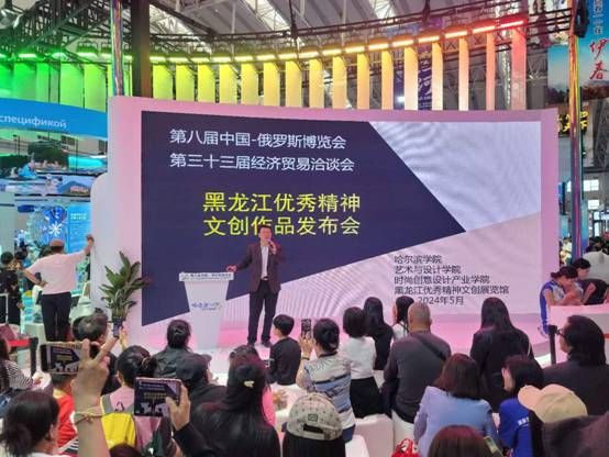 (文/郭鹏程)以“合作、互信、机遇”为主题的第八届中国-俄罗斯博览会于2024年5月16日—21日在哈尔滨国际会展中心举办,同期举办第三十三届哈尔滨国际经济贸易洽谈会。5月18日是第一个公众开放日,哈尔滨学院精彩亮相哈尔滨主题展区,在中心舞台进行了部分文创作品展示。艺术与设计学院党委书记、时尚创意设计产业学院院长孙国辉代表哈尔滨学院进行了主旨发言,影像艺术系党支部书记董春阳等师生参加了活动。现场气氛热烈,近百人观赏并互动,进行参观学习交流。