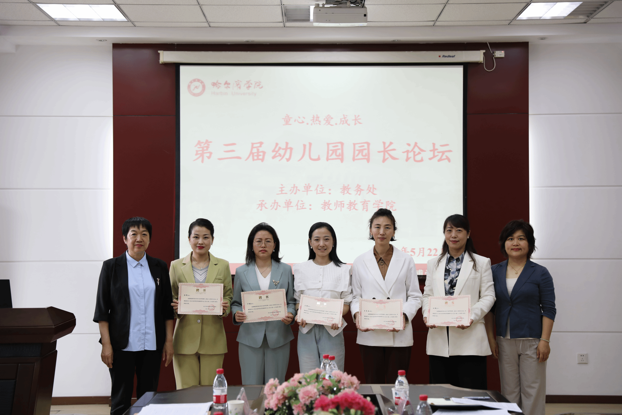 (文/王菠)作为校庆90周年系列活动之一,5月22日,教务处主办、教师教育学院承办第三届幼儿园园长论坛。本次幼儿园园长论坛以党的二十大报告中特别提出的“高质量教育体系”为思想引领,以“童心·热爱·成长”为主题,对标《新时代基础教育强师计划》《学前教育专业师范生教师职业能力标准(试行)》,聚焦学前教育专业2024版人才培养方案修订,切实提高人才培养质量,增强学前教育专业人才的适应性和吸引力。论坛诚邀哈尔滨市红霞幼儿园园长王良玉、哈尔滨市直机关幼教发展中心教育教学部部长王辉、哈尔滨市香坊实验幼儿园长园芦艳、哈尔滨市电兴幼儿园园长刘鹏、哈尔滨市阿城区第二幼儿园园长黄野等五位学前教育领域一线专家作为代表参与此次论坛。哈尔滨学院教务处处长姜艳丽、教师教育学院院长周淑红、副院长刘亨荣以及学前教育专业全体教师出席了本次论坛,会议由刘亨荣主持。