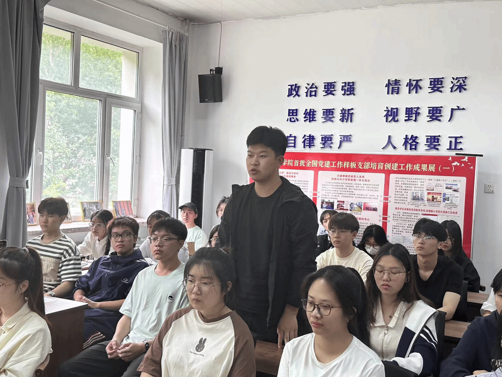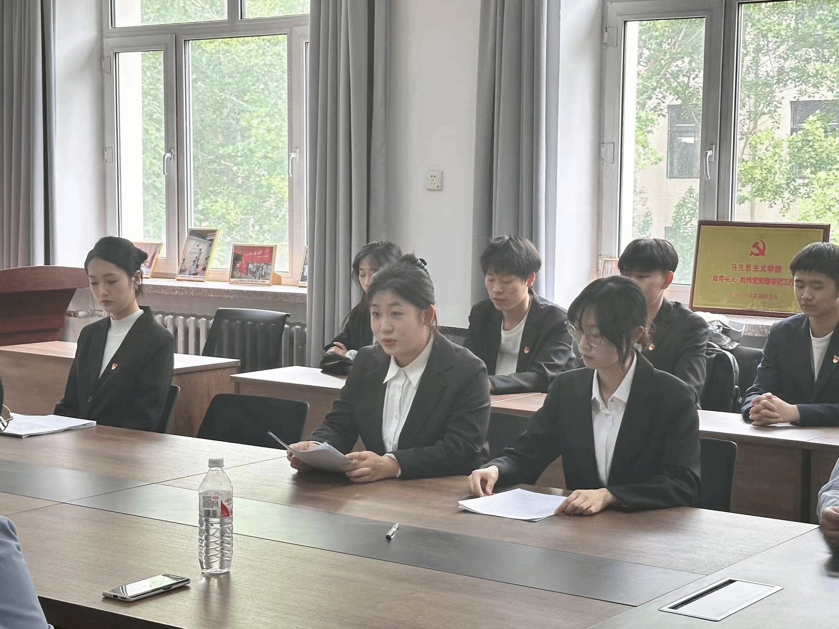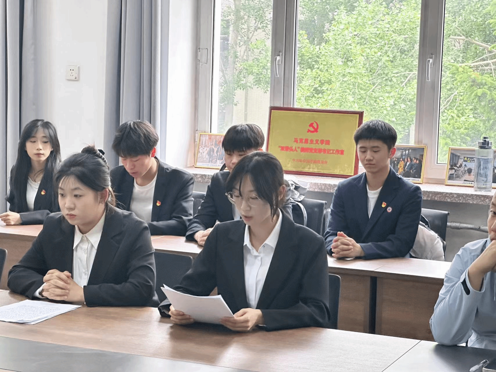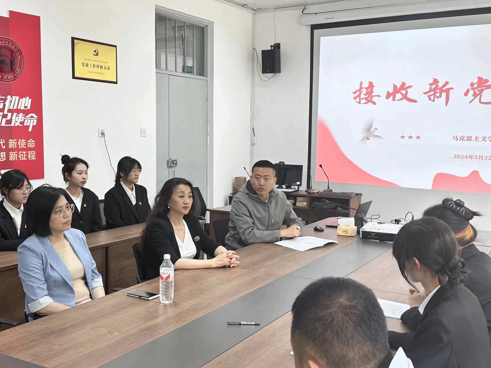 接收新党员大会是马院党组织建设的重要内容,2名同志光荣入党,马院学生党支部又添新力量、新血液。希望2名同志铭记入党时的铮铮誓言,在学习、工作和生活中处处起先锋模范作用,争取早日成为一名合格的中共党员。