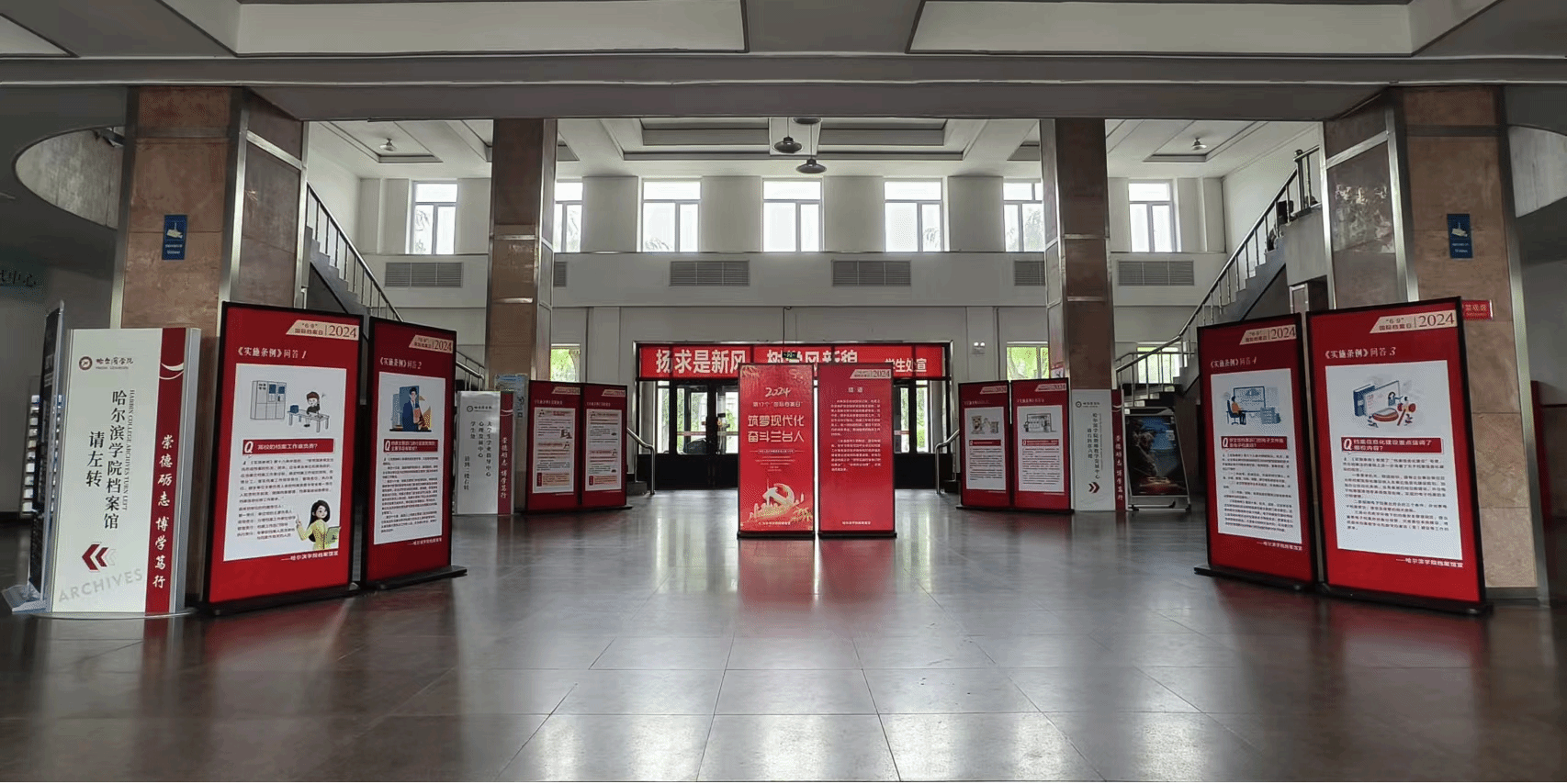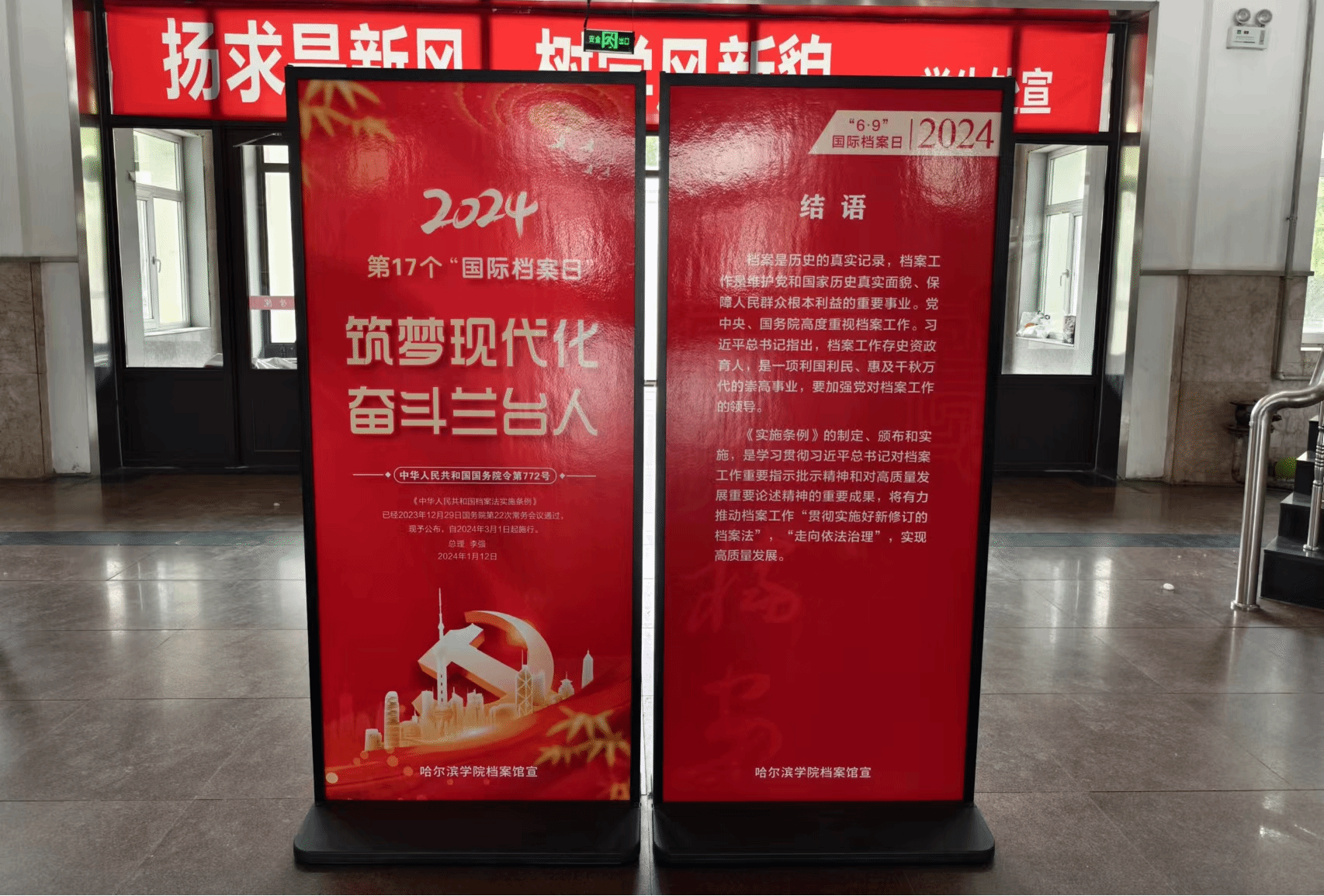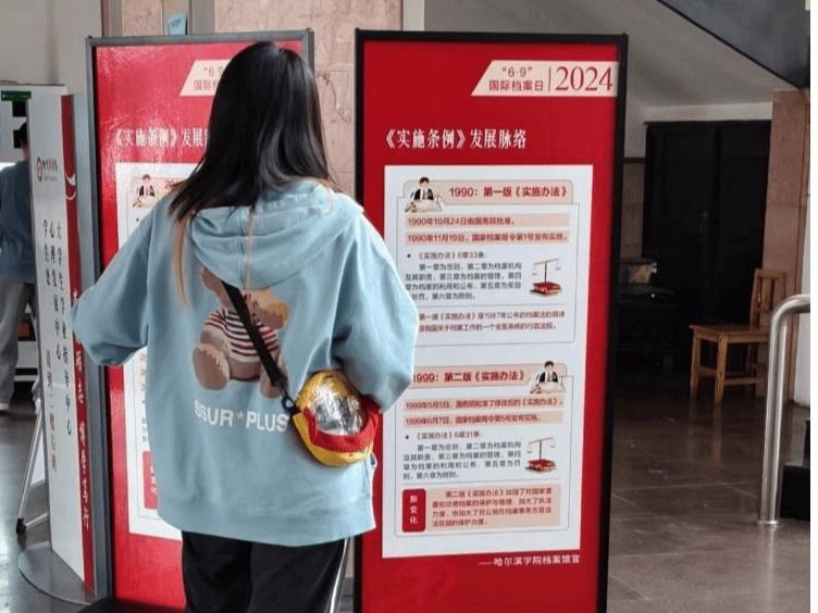 (文/崔畅)为庆祝第十七个“6•9国际档案日”,6月6日起,学校档案馆在哈尔滨学院一号教学楼大厅开展为期5天的《中华人民共和国档案法实施条例》宣传展览活动。此次联展活动由黑龙江省高校档案学会组织,哈尔滨学院档案馆联合承办,并得到全省各高校档案部门积极响应。