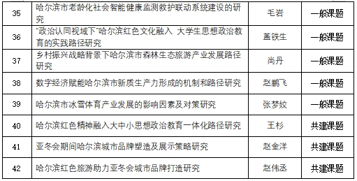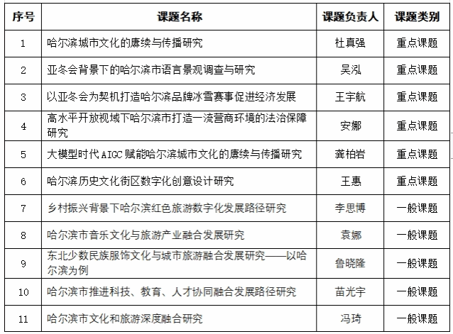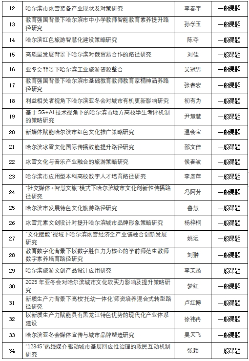 哈尔滨学院2024年度哈尔滨市社科联重点课题、一般课题、共建课题一览表 |