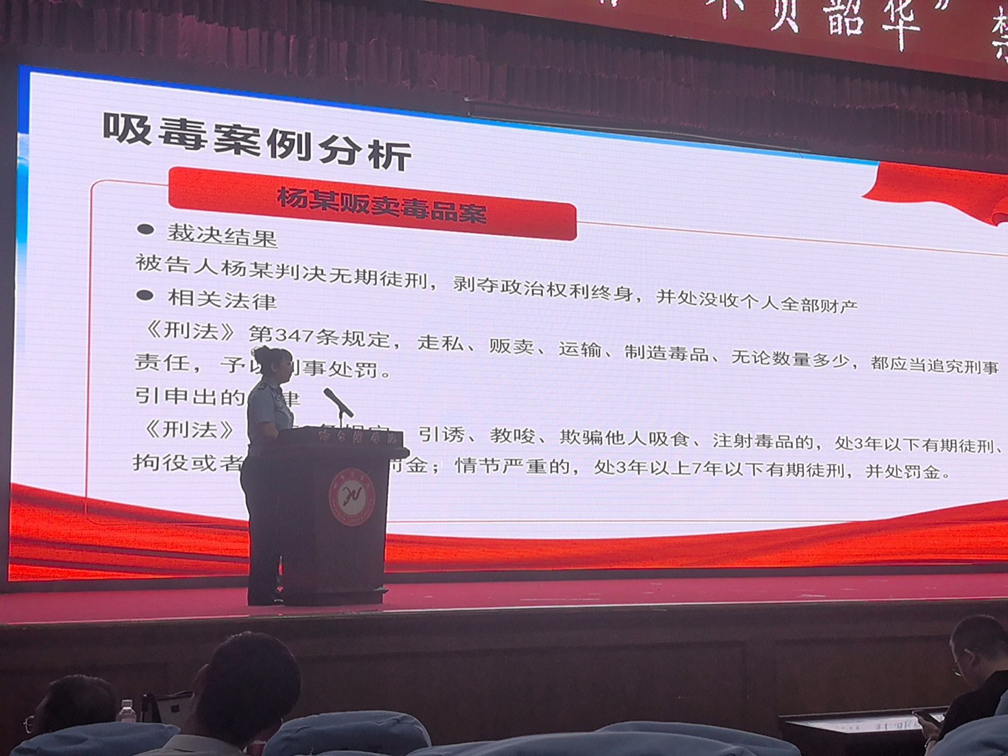本次活动由哈尔滨学院和黑龙江省松北强制隔离戒毒所共同承办,活动得到了校党委宣传部、学生处、团委、图书馆等部门的大力支持。保卫处处长李家强、图书馆馆长李桂霞、学生处副处长张强、黑龙江省松北强制隔离戒毒所副所长董学楠,校保卫处、黑龙江省松北强制隔离戒毒所相关同志,哈尔滨学院“冰城之光”大学生禁毒志愿者、学生代表200余人参加活动。活动由保卫处副处长揣志强主持。