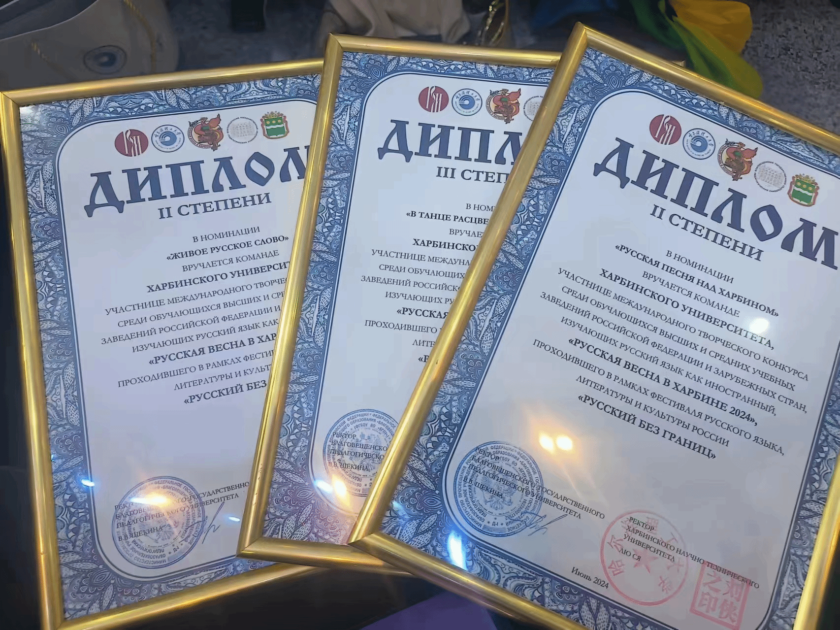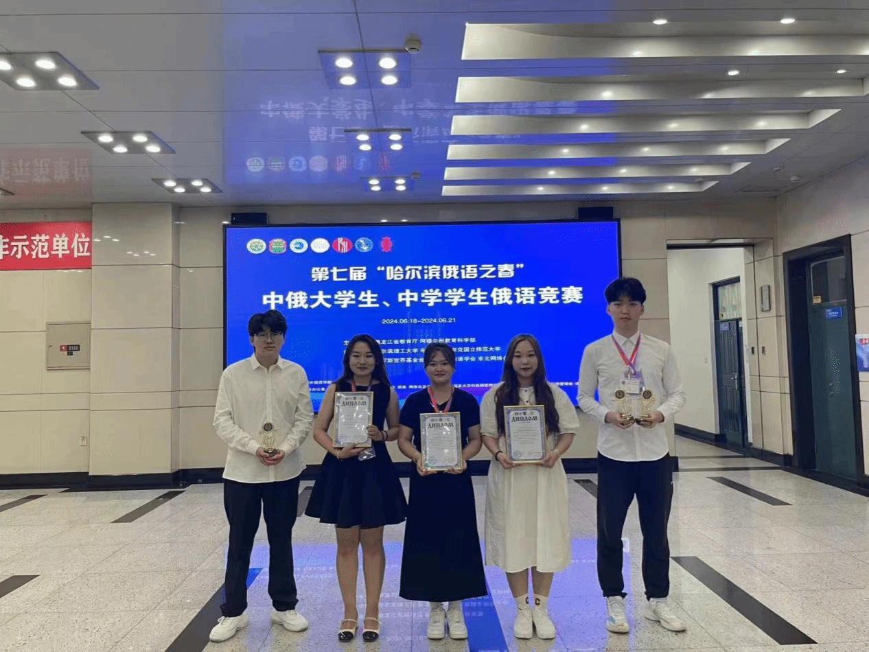 我校学子在俄语外教娜塔莉亚和达俐燃的指导下,再创佳绩,共斩获3个奖项。具体获奖情况如下:俄语专业2021级学生蒋岩岩凭借朗诵作品《Любочка》获得俄语朗诵二等奖;俄语专业2021级学生蒋岩岩、翟卓和俄语专业2022级学生刘阳在俄罗斯歌舞《Матрёшечки》中荣获二等奖;俄语专业2022级学生刘阳和赵洋表演的舞蹈《В. Сюткин “7 тысяч над Землёй”》获得三等奖。