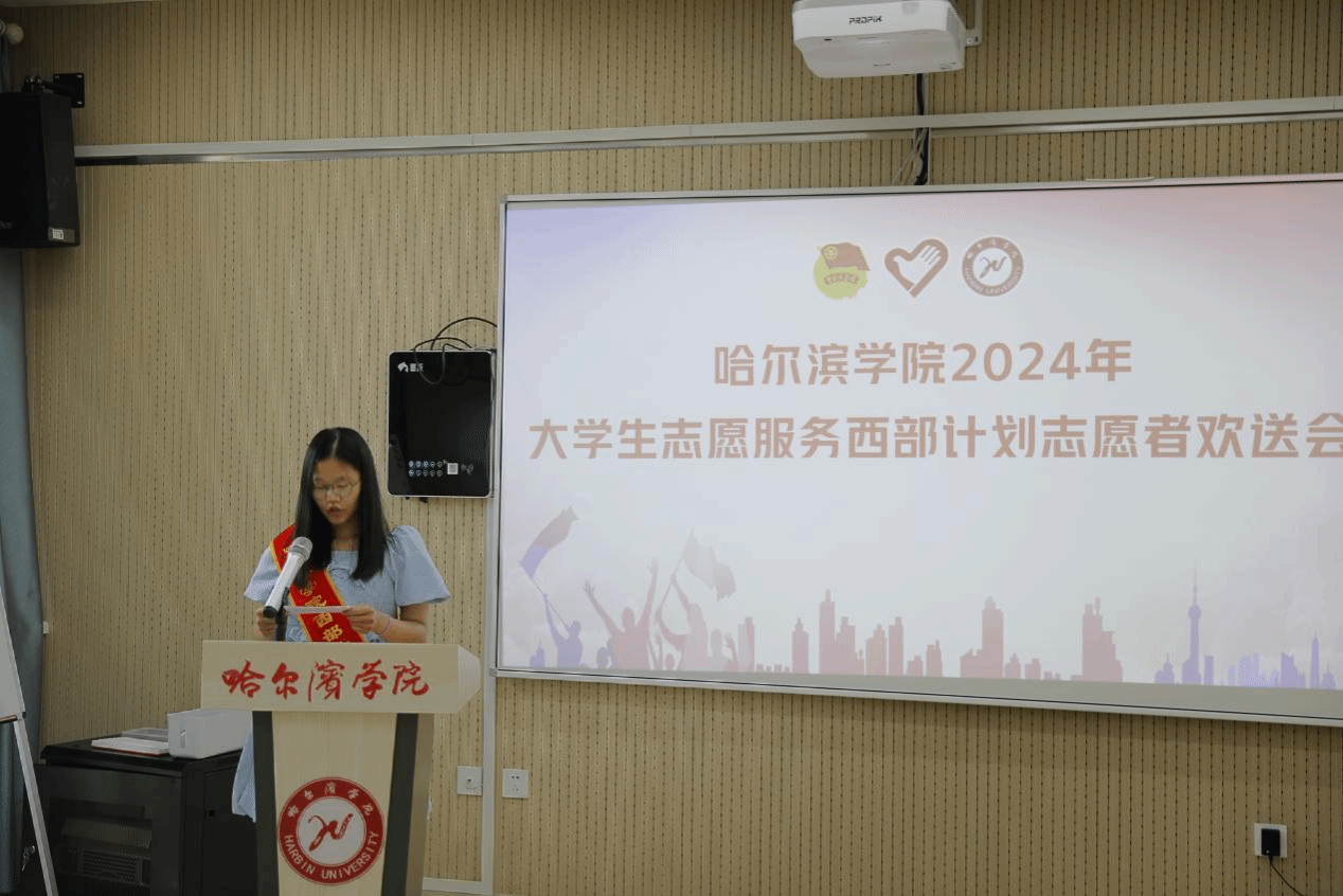 随后我校西部计划项目办专员黄婷婷介绍2024年我校西部计划招募情况。服务新疆志愿者经济管理学院张自欣、服务内蒙古志愿者外国语学院鲍文微、服务龙江志愿者信息工程学院盖成鹏三位同学作为我校西部计划志愿者代表,结合自身实际,分享了投身志愿服务西部计划的初衷和未来规划,表达了青年对“服务基层、扎根基层”的认识和担当,纷纷表示要以实际行动在推进祖国西部建设、民族复兴伟业的新征程上贡献哈院学子的青春力量。