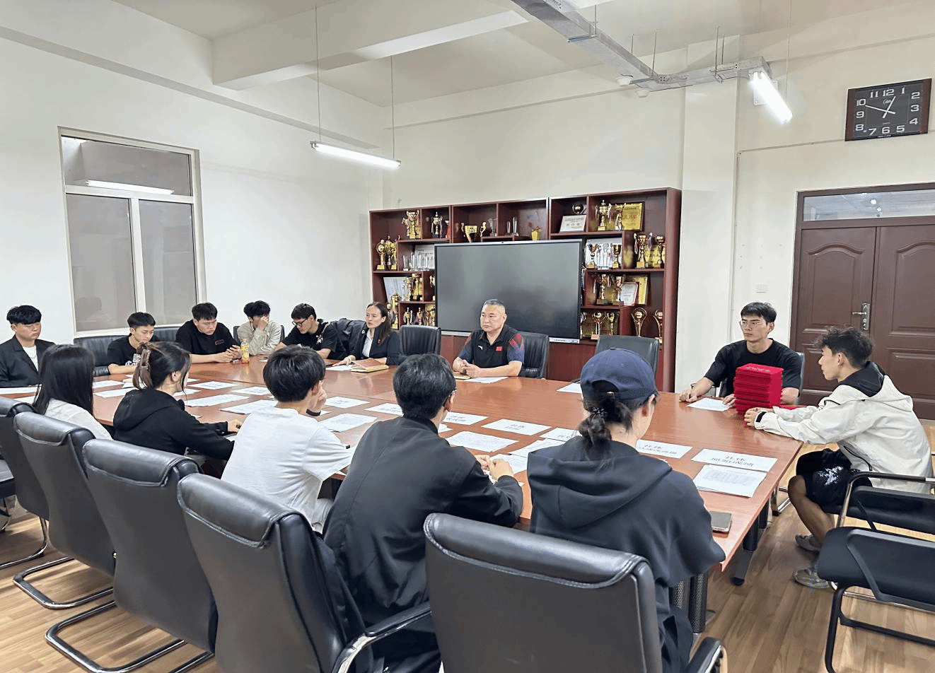 戴显岩院长在会上对各二级院体育部长提出要求:高度重视体质测试工作,积极组织本院学生开展专项素质锻炼,坚持出早操。为了提高全校学生优良率、达标率,体育学院会派出专业学生积极协助各二级院开展各测试项目的专项辅导。