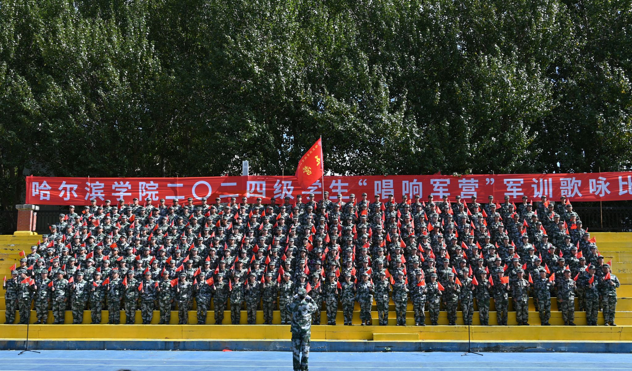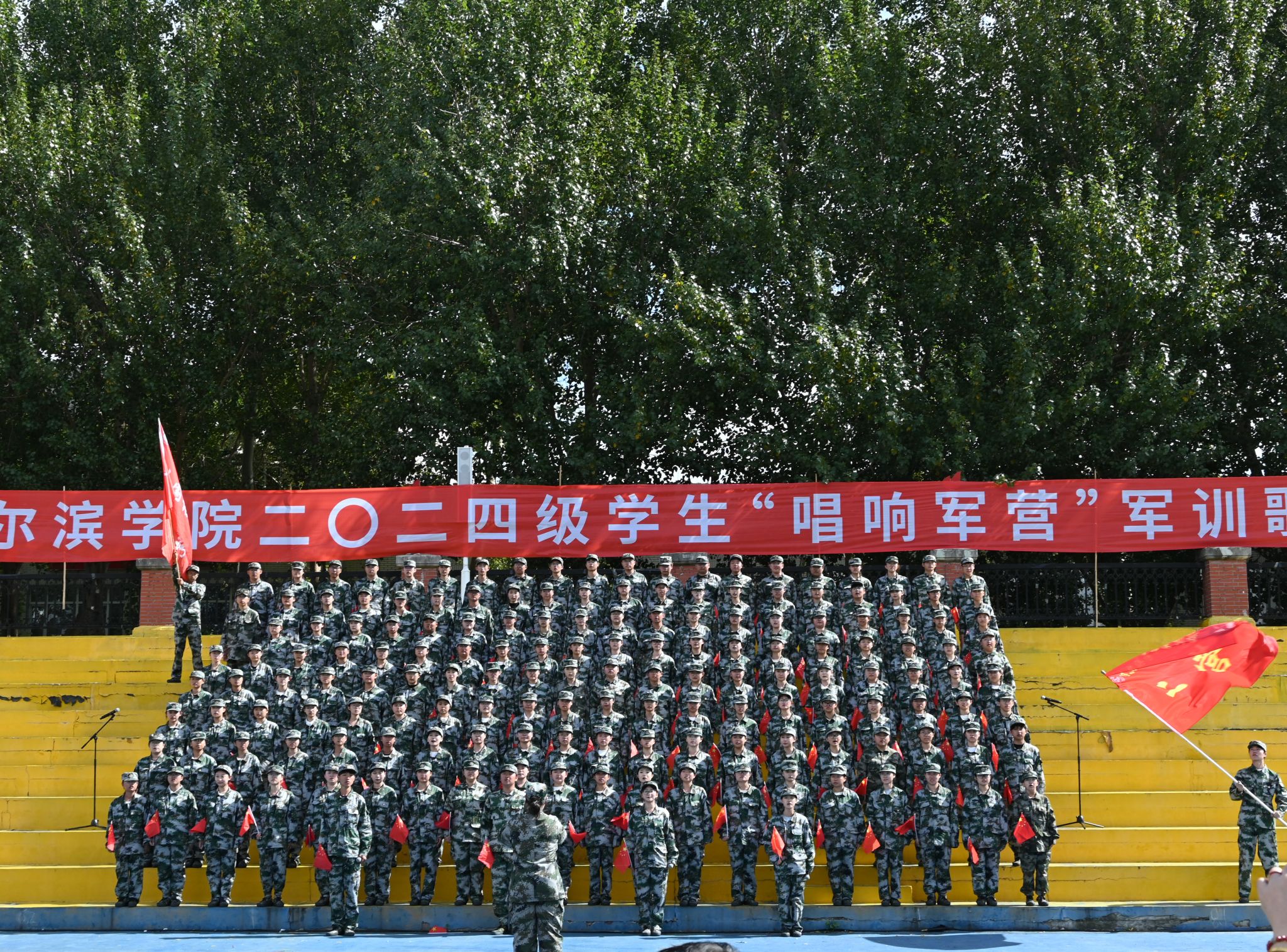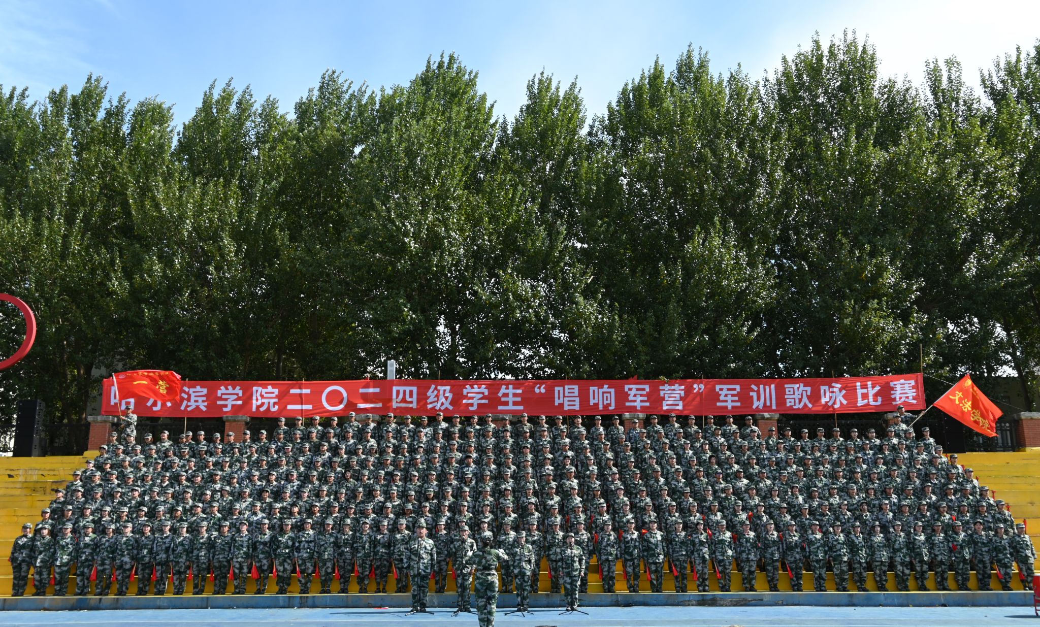 九秩芳华 弦歌不辍。校歌《冰城之光》唱出了哈院学子脚步铿锵,追逐梦想的坚毅决心。气势雄浑、慷慨激昂的军歌承载着青年学子的家国情怀。“唱响军营”军训歌咏比赛是厚植学生爱党爱国爱人民伟大情怀、增强学生民族自豪感和自信心的爱国主义教育载体,是“大思政”体系下,促进学生全面发展的重要举措。校团委将在“三全育人”格局和“大思政”工作体系中发挥共青团组织育人、实践育人、文化育人、网络育人等优势,在学生思想政治工作中发挥主力军作用,不断提升共青团工作质量水平,动员引领团员青年在强国建设、民族复兴伟业中挺膺担当。