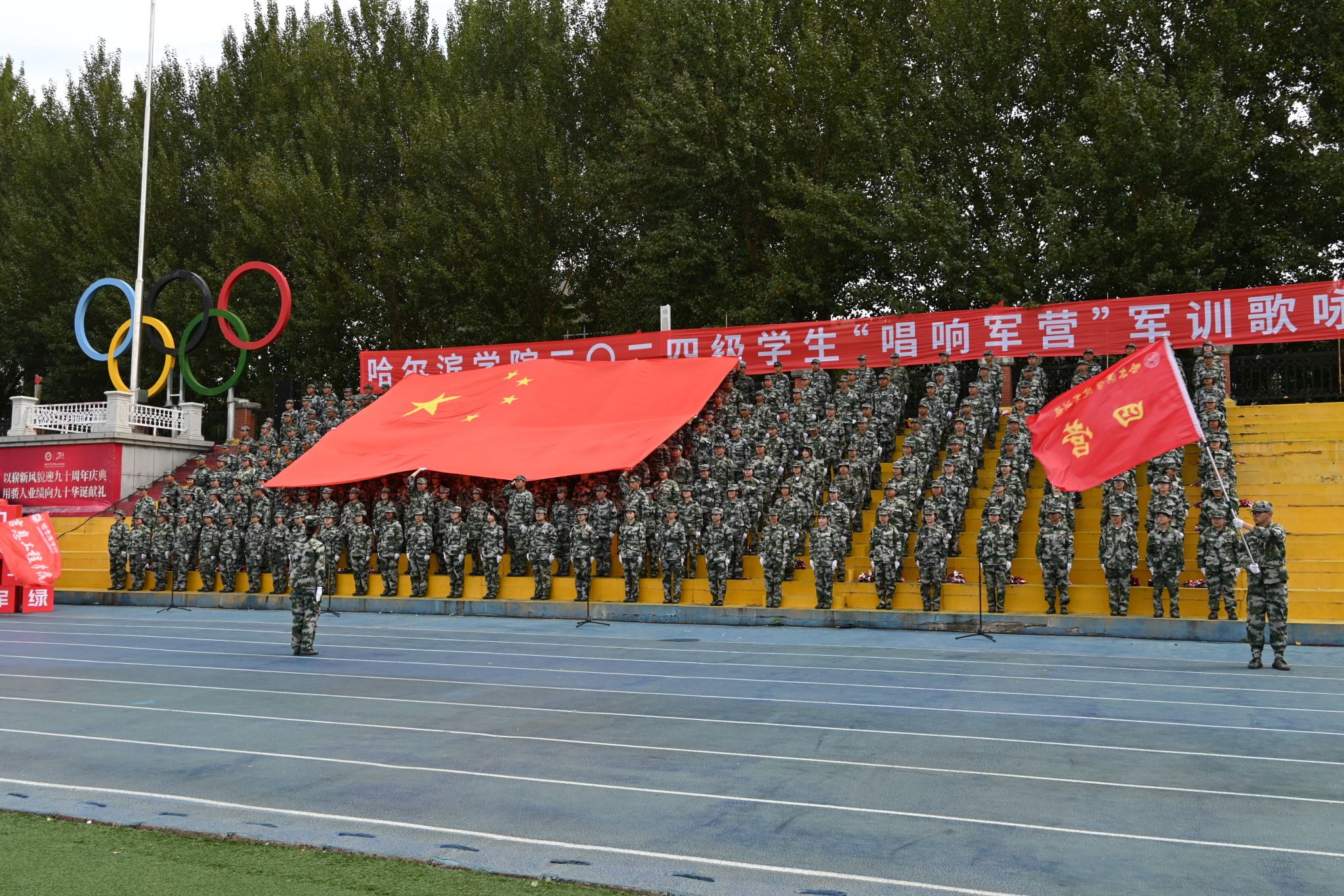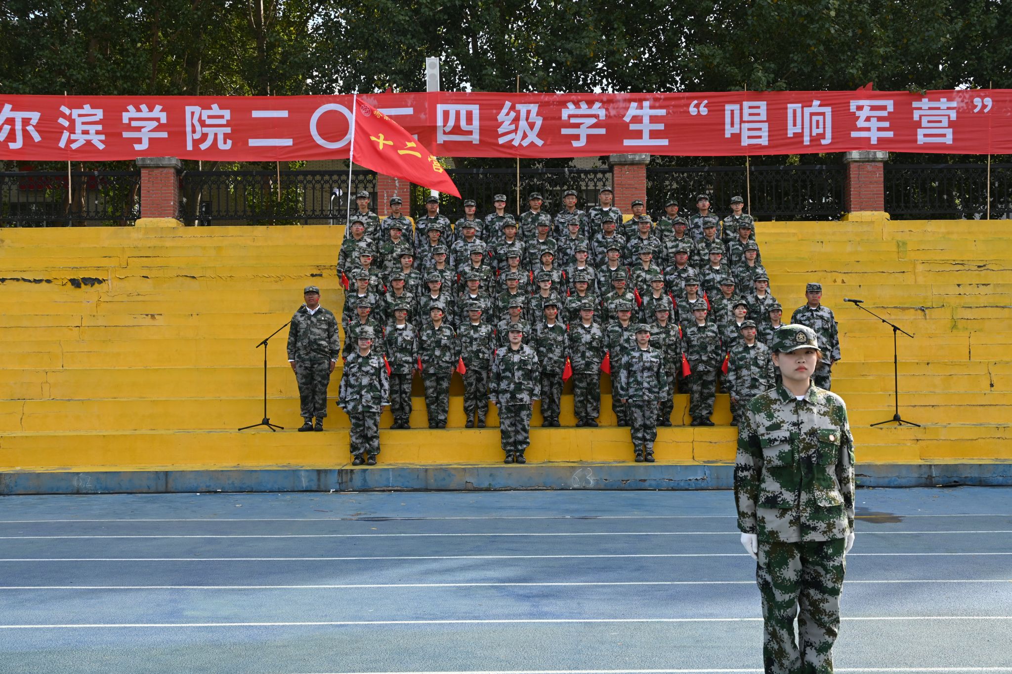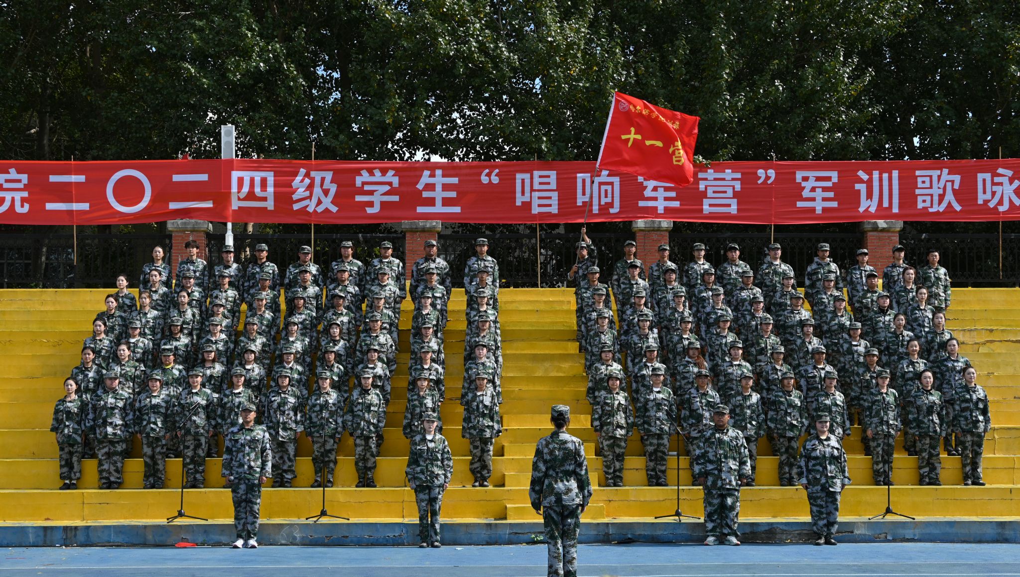 九秩芳华 弦歌不辍。校歌《冰城之光》唱出了哈院学子脚步铿锵,追逐梦想的坚毅决心。气势雄浑、慷慨激昂的军歌承载着青年学子的家国情怀。“唱响军营”军训歌咏比赛是厚植学生爱党爱国爱人民伟大情怀、增强学生民族自豪感和自信心的爱国主义教育载体,是“大思政”体系下,促进学生全面发展的重要举措。校团委将在“三全育人”格局和“大思政”工作体系中发挥共青团组织育人、实践育人、文化育人、网络育人等优势,在学生思想政治工作中发挥主力军作用,不断提升共青团工作质量水平,动员引领团员青年在强国建设、民族复兴伟业中挺膺担当。