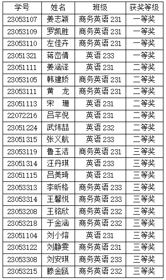 九秩华章·名著行 外国语学院首届经典名著英语知识竞赛获奖名单