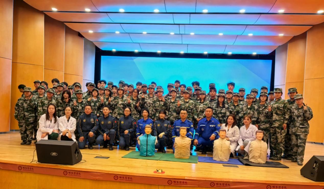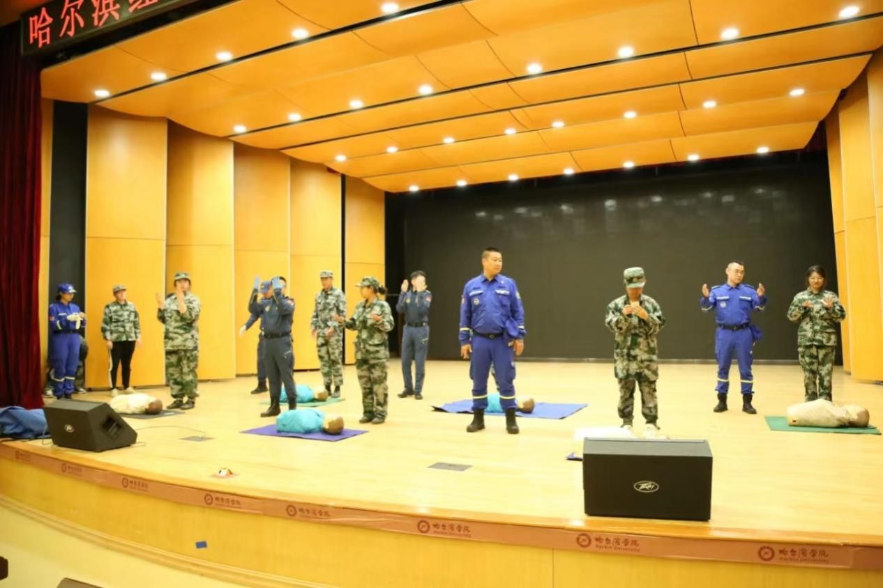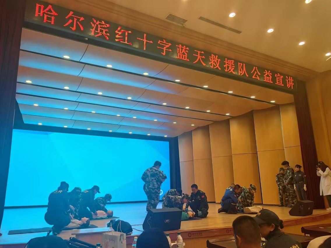 2024年9月19日,哈尔滨学院后勤管理处卫生所邀请红十字蓝天救援队在哈尔滨学院小音乐厅举办2024级新生心肺复苏公益培训活动。