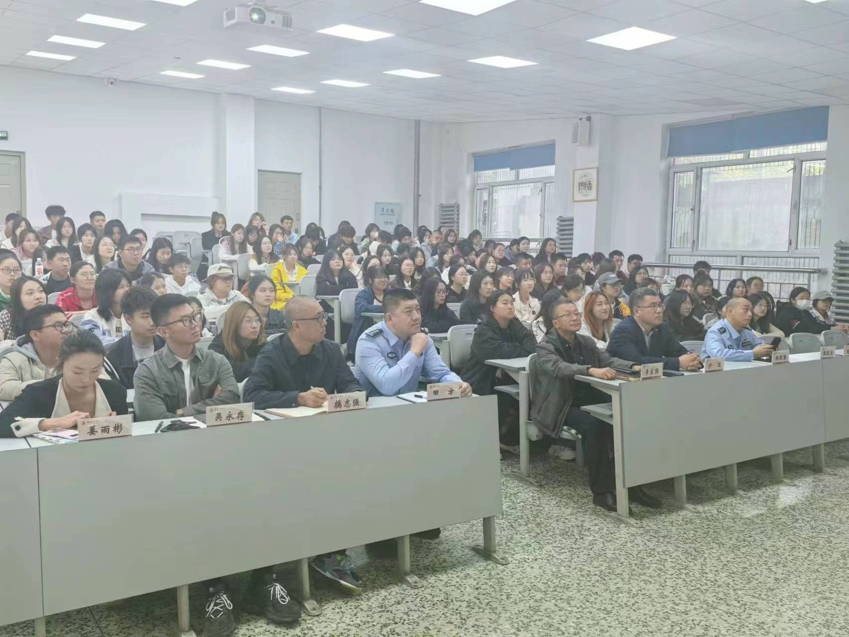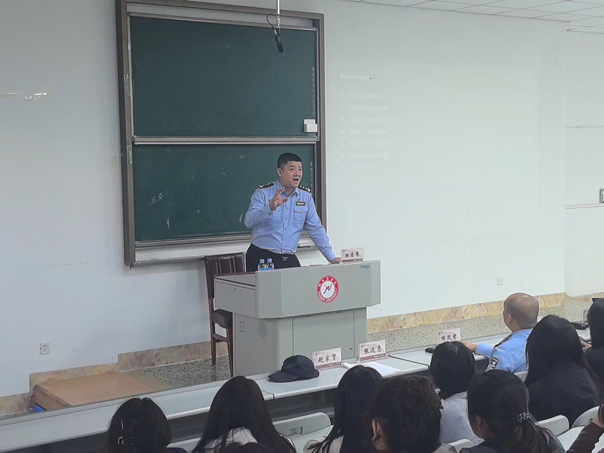 保卫处副处长揣志强代表学校对大队长田方、教导员杨凯君、警员张远志进校参加校园普法宣教活动表示热烈的欢迎,对田队长、张警官所做的精彩报告表达诚挚的谢意。他要求同学们面对防范非法集资与传销活动,思想上要高度重视、注重相关领域知识学习、克服不劳而获的贪欲,守护好自己的钱袋子,远离虚拟货币风险,共建平安美好校园生活。