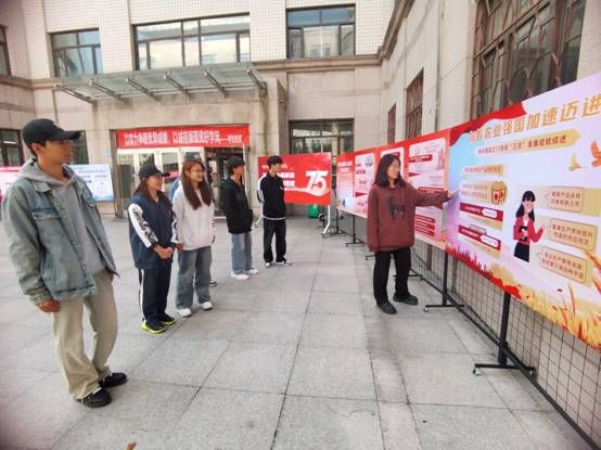 展览现场,每一块展板都蕴含着深刻的思想,每一张图片都传递着发展的力量。展览不仅展示了新中国成立以来的辉煌历程,更激发了同学们的爱国主义情感和时代责任感。