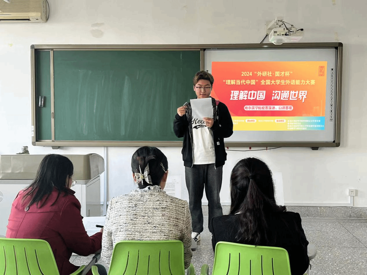 (文/龚柏岩、王笑悦)在庆祝我校建校90周年的辉煌时刻,一系列丰富多彩的活动如火如荼地展开。其中,作为校庆活动和第二十四届科技文化艺术节的组成部分,由省委宣传部和省教育厅联合主办的2024“外研社·国才杯”“理解当代中国”全国外语能力大赛黑龙江赛区英语组演讲与口译大赛校级选拔赛于9月25日下午在崇德楼五楼成功举办。此次比赛由外国语学院承办,得到教务处和学生处的大力支持。