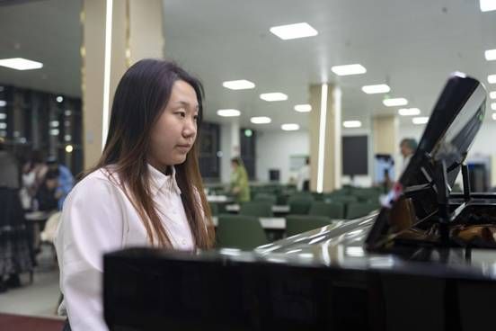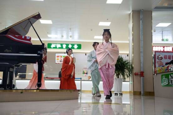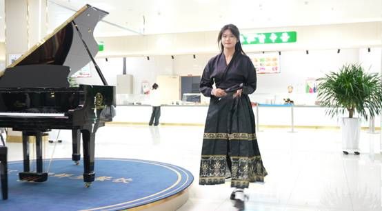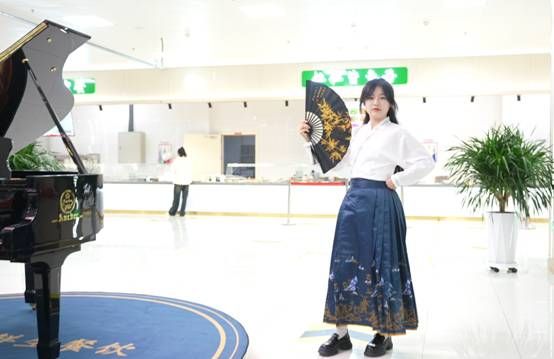 当日傍晚,活动在丁香餐厅准时拉开帷幕。现场气氛热烈,师生们纷纷驻足观看。活动由钢琴演奏和时装走秀组合呈现,指尖上的旋律弥漫着整个餐厅,为时装走秀营造了浓厚的艺术氛围。