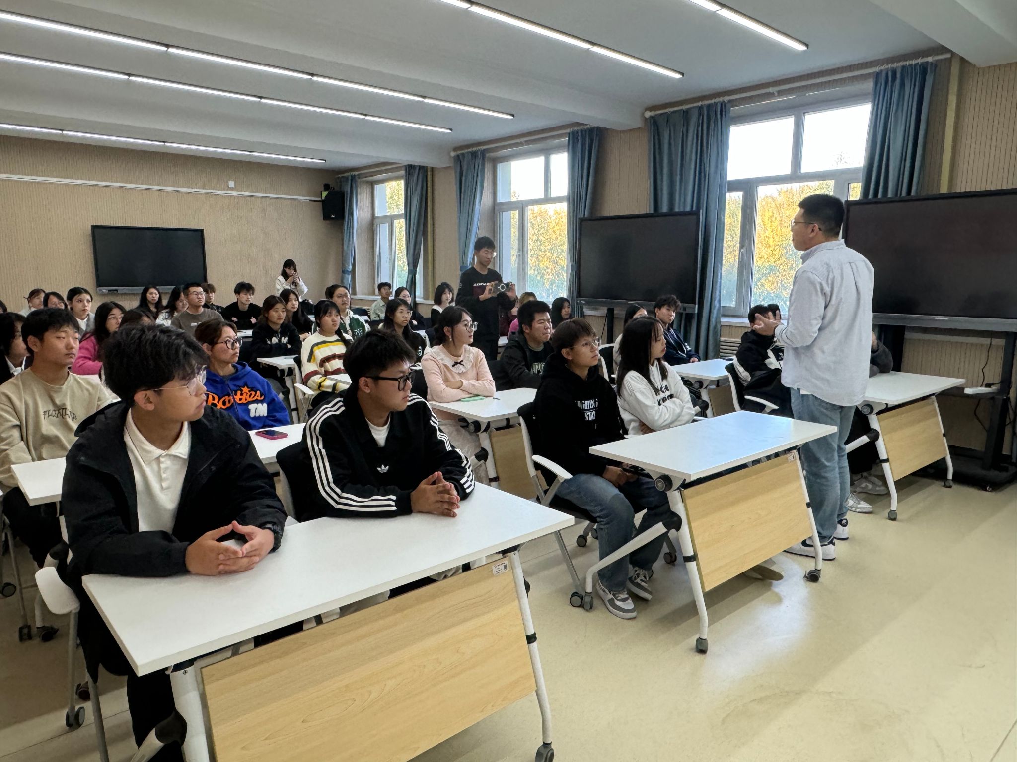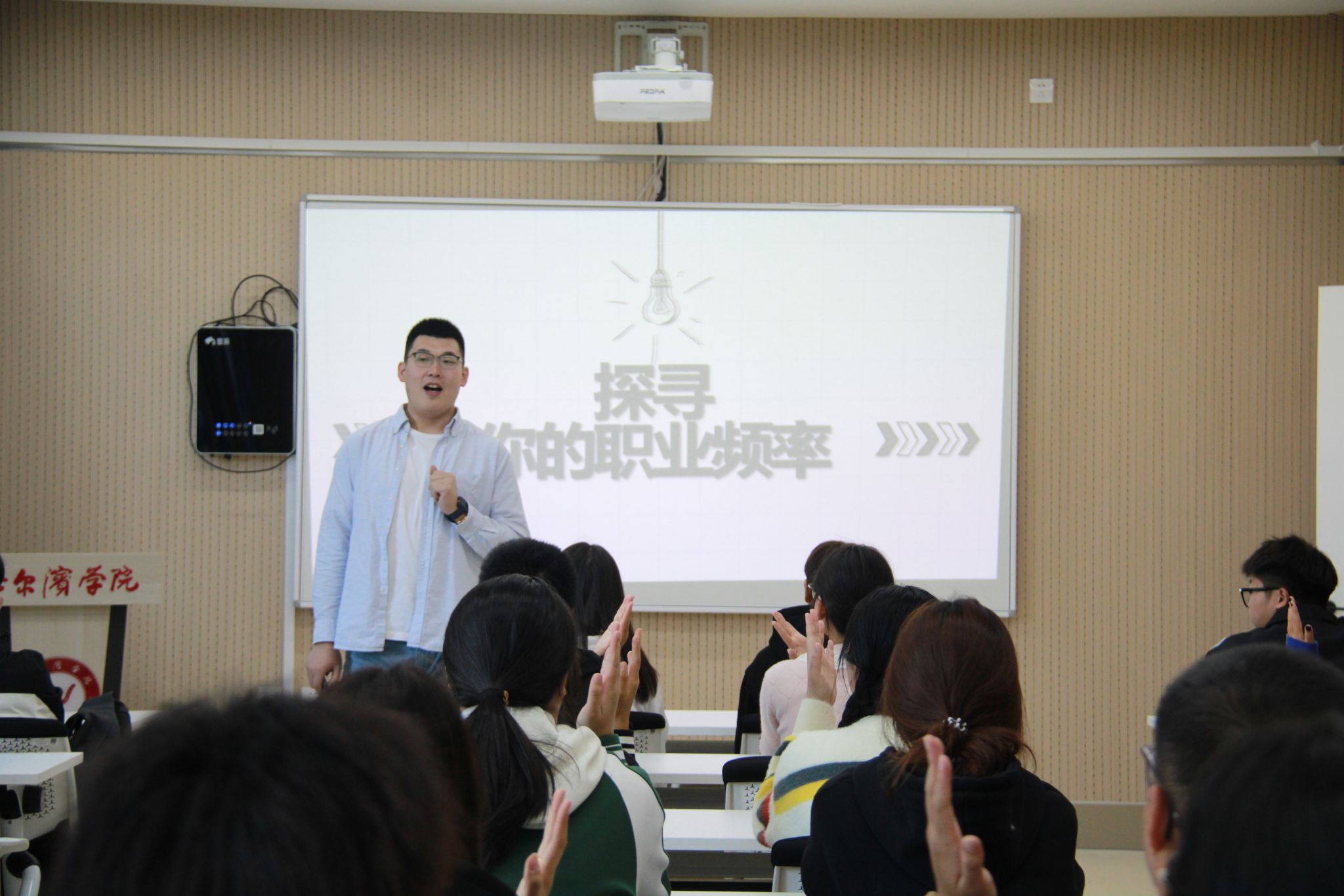 本次讲座围绕“探寻你的职业频率”这一主题展开,全面覆盖了自我分析、模型应用、职业定位策略和求职准备等关键环节,帮助学生构建清晰的职业规划蓝图。杨涛老师紧密结合当前职场趋势,深入浅出地剖析了职业规划中的要点与注意事项,引导学生们正确认知自我,明确职业目标,为未来的求职之路奠定坚实基础。互动环节中,学生们踊跃提问,导师耐心解答并给予实用的建议和策略。讲座尾声,他鼓励学生进行内求,引导学生进行自身职业规划,并建议学生从自身出发,不拘于专业,同步提升自身阅历和眼界,发展自我,为更长远的职业发展打下良好基础。