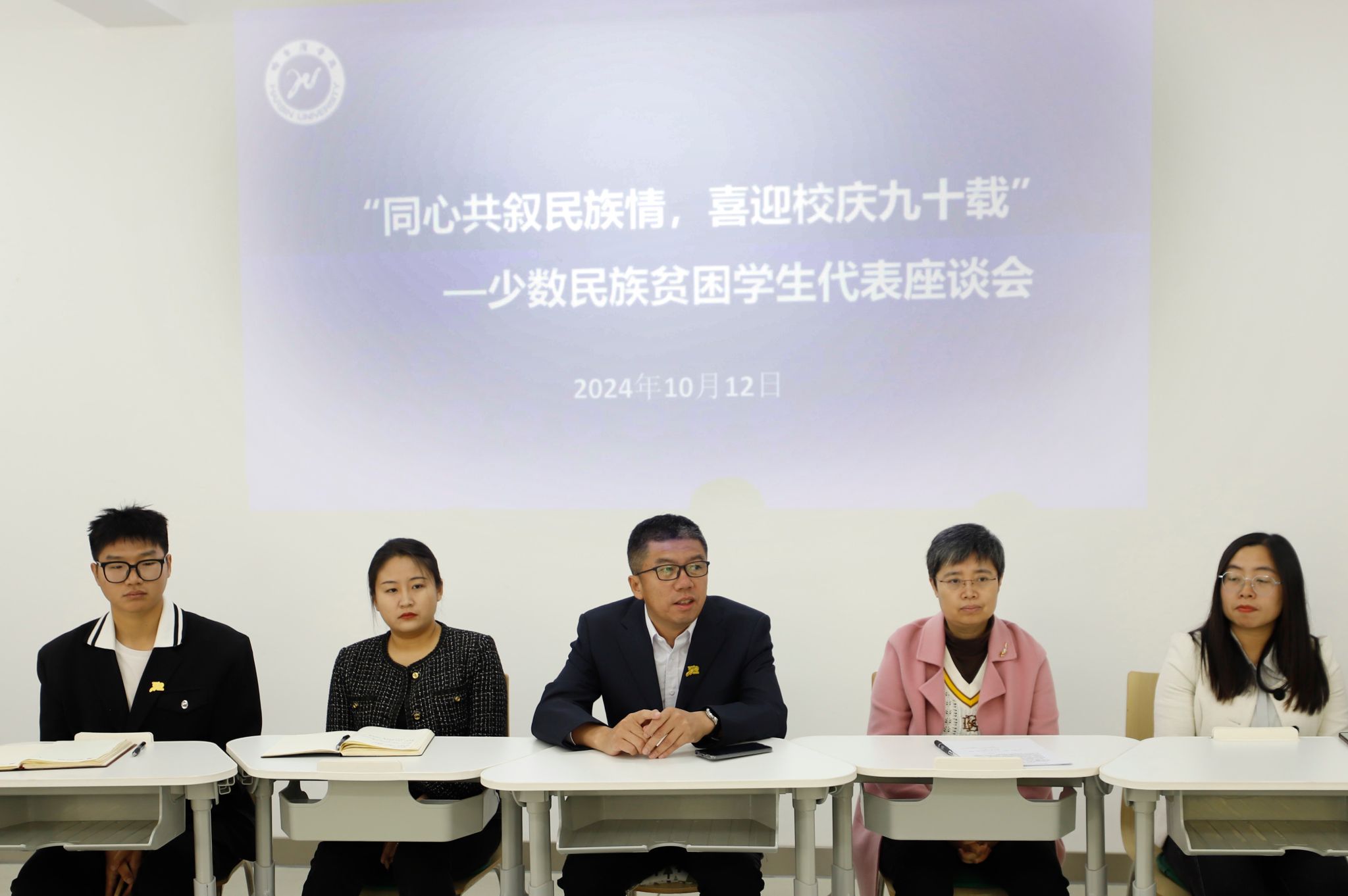 座谈会上,庞哲与各位少数民族同学深入交谈,了解他们的学业与生活情况,并指出学校始终高度重视对少数民族学生的培养和关爱,如果同学们在学习和生活中遇到困难,可以随时与辅导员老师或学生处联系,学校一定会竭尽全力进行帮扶。随后,资助中心顾军老师向同学们详细讲解了国家奖助学金、学校奖助学金、助学贷款、勤工助学等项资助政策。