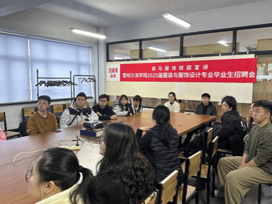 (文/鲁晓隆)近日,艺术与设计学院服装与服饰设计专业邀请哈尔滨森马公司进行校园宣讲,并举办了2025届毕业生招聘会。哈尔滨森马公司人力资源部刘美辛经理、艺术与设计学院服装与服饰设计专业主任王长宏、师生代表、辅导员孙家宝、戴佳宝参加了本次招聘会。