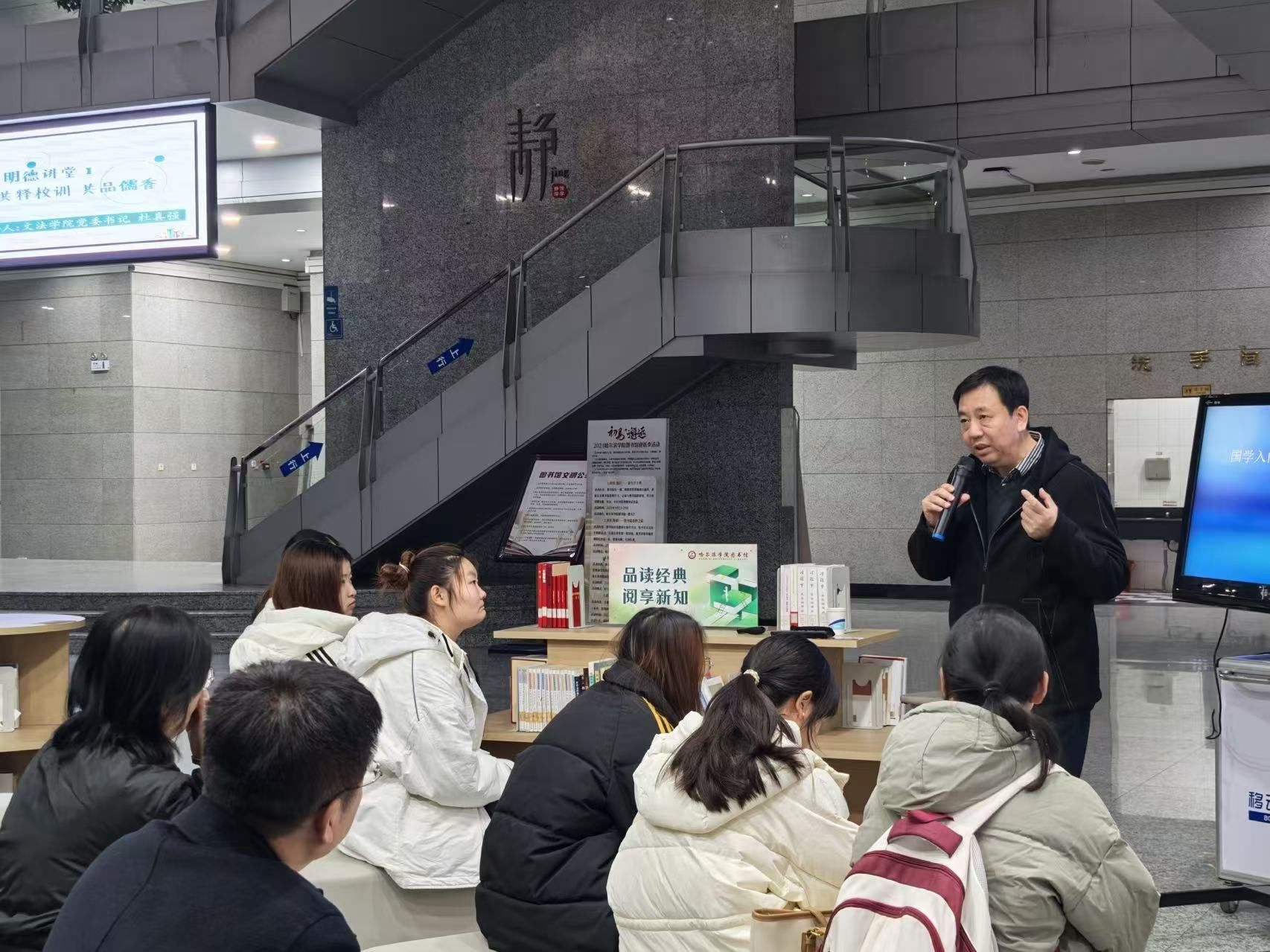 本次活动邀请文法学院党委书记杜真强做主讲人,就学校校训“崇德励志 博学笃行”中蕴含的儒家文化意蕴进行解读,杜书记从国学入手,具体到儒家文化,再具体到校训,深入浅出、旁征博引,为大家提供了一场中华优秀传统文化的精神盛宴。