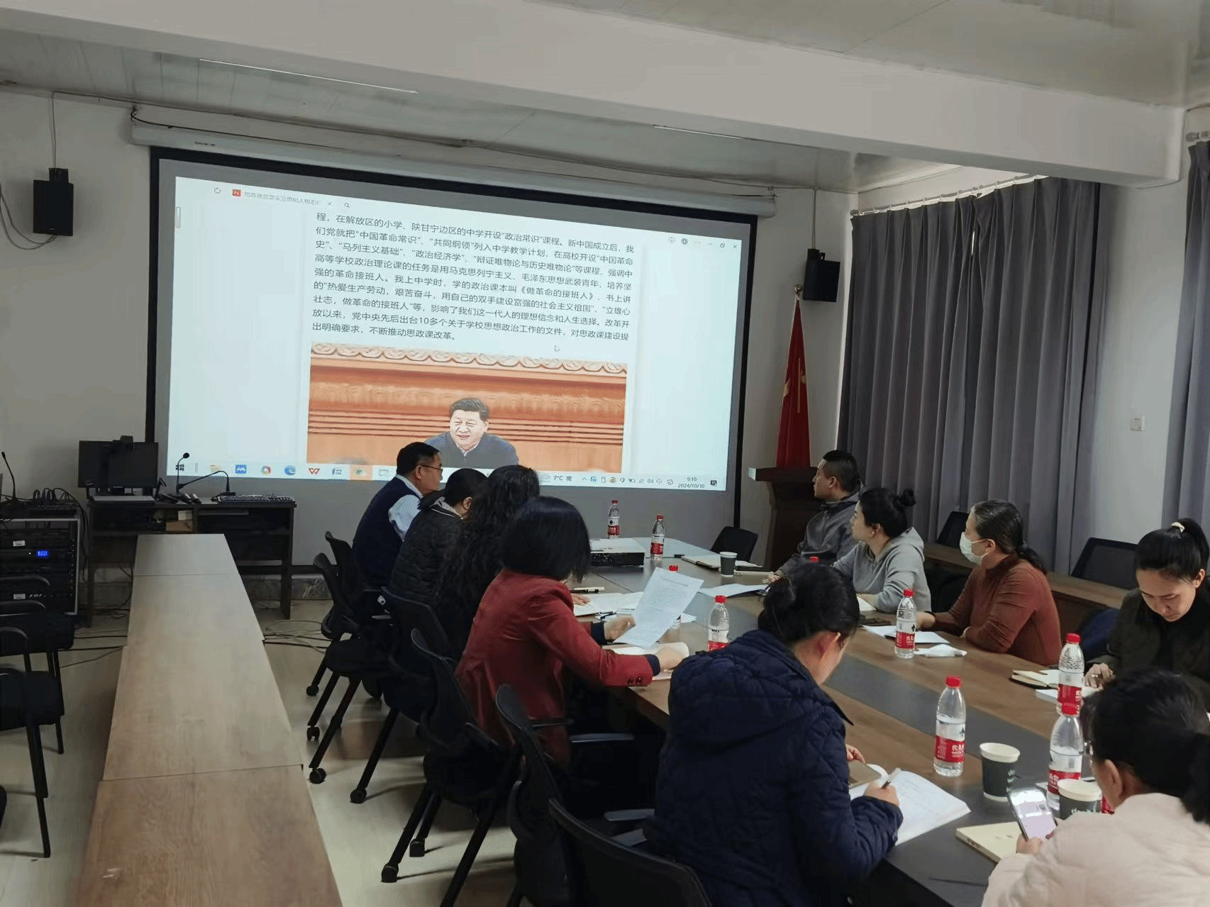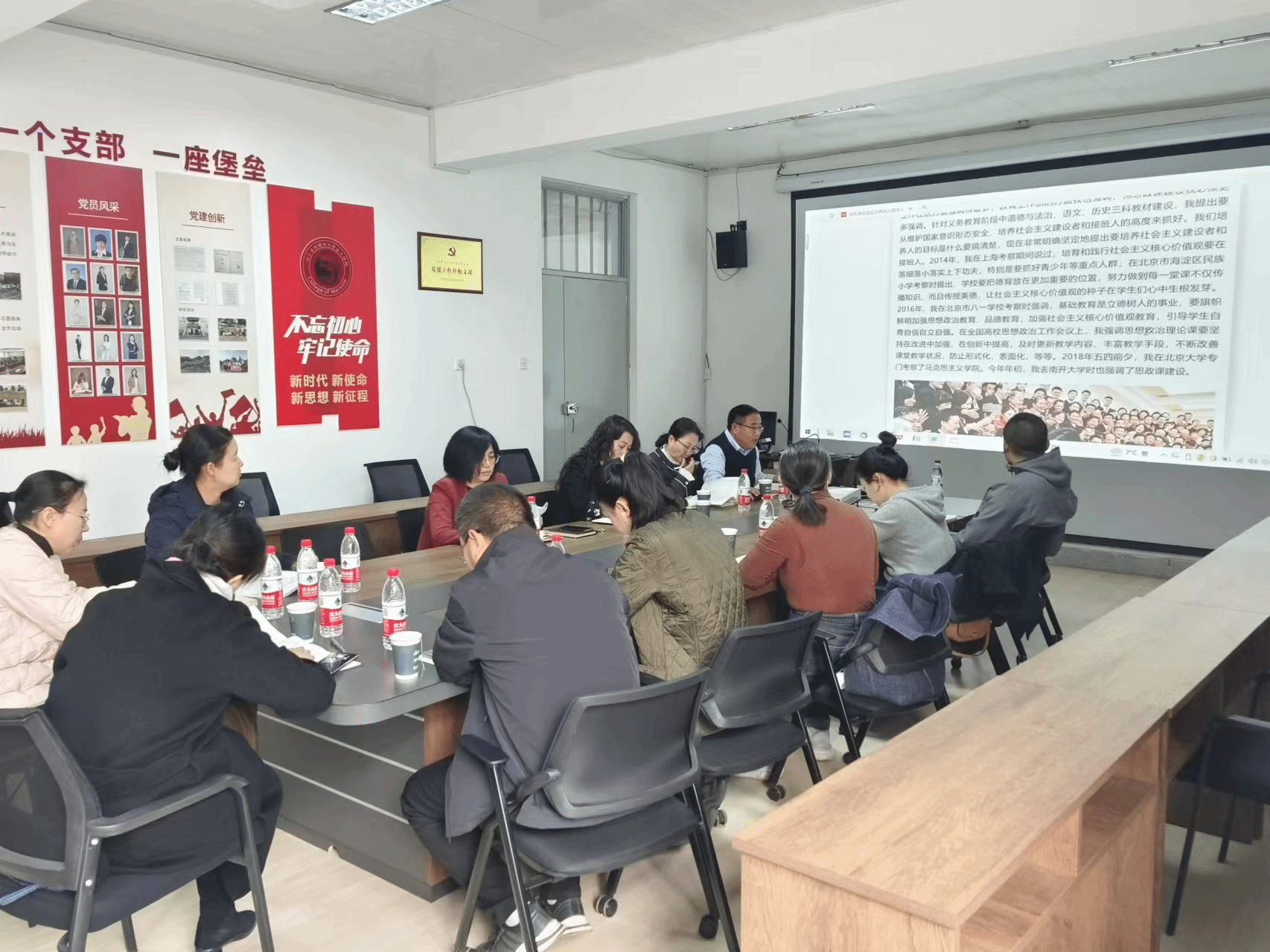 10月30日上午,马克思主义学院在党员之家召开党总支理论中心组专题学习,结合思政课建设实际,深入学习习近平总书记关于思政课建设的重要讲话和重要指示精神。这次理论学习内容对马克思主义学院具有直接相关性和重要指导意义,因此党总支扩大了范围,各党支部书记、系主任和各教研室主任参加学习,宣传部同志参会旁听。