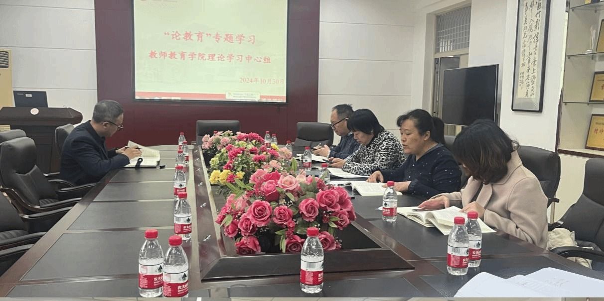 (文/于蒙蒙)10月30日下午,教师教育学院理论学习中心组在6211开展了习近平总书记《论教育》专题学习活动,教师教育学院理论学习中心组成员全员出席。本次学习活动由教师教育学院党委书记杨晓静主持,党委宣传部副部长朱明与会旁听,并就旁听制度、学习宗旨做了简短的会议发言。