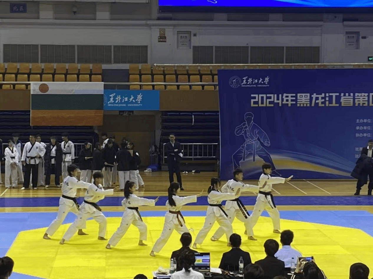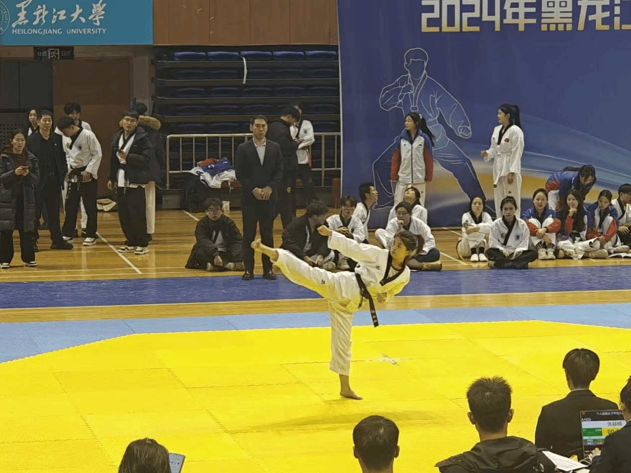 哈尔滨学院跆拳道队在赛场上表现卓越,荣获男子甲组品势太极五章第一名,女子甲组远度击破第一名,团体跆拳道舞、竞技男子54公斤级、竞技女子62公斤、男子品势金刚等四项第二名的优异成绩。这些成绩背后,是队员们平日里的辛勤付出与顽强拼搏。安琪同学虽软组织挫伤,但带伤坚持训练,从未言弃,只为在赛场上绽放光芒;许铈炎同学多次韧带拉伤,却凭借哈尔滨学院永不言败的精神超越自我,勇夺桂冠。