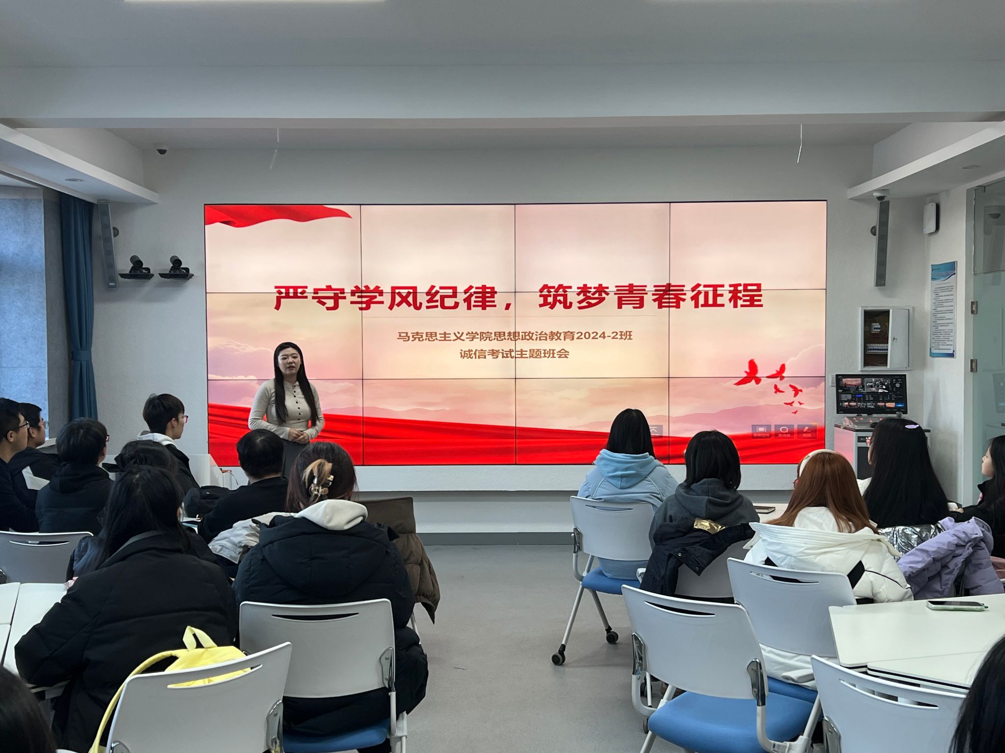(文/李子木)为深入落实立德树人根本任务,切实有效推进常态化、长效化、制度化学风建设,进一步完善“愿学”氛围浓厚、“能学”基础扎实、“善学”方法得当、“乐学”空间广阔的学风建设体系,建立“思想教育引领学风、榜样模范带动学风、丰富活动推动学风、优化机制保障学风”的工作思路,马克思主义学院于12月6日至12月13日期间召开了“砺学砺纪律,铸魂铸学风”系列主题班会。班会共举办五场,由马克思主义学院党总支书记孙芳与思想政治教育专业班主任王啸、赵金洋、李思博、赵伟丞、高兴、王梓怡组织召开,辅导员李子木及2022、2023、2024级全体学生参加。