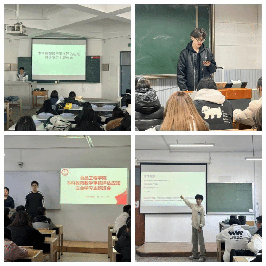 各二级学院通过班会、讲座、小组讨论等多种形式对手册内容进行了梳理和解读,同学们认真听讲、积极参与讨论,分享各自的理解与疑问。通过此次学习,我校学生深刻意识到本科教育教学审核评估的重要性,对评估的基本理念、基本内涵、工作要点和具体流程有了进一步认识,详细了解了评估指标体系以及学校本科教育教学审核评估的基本情况。