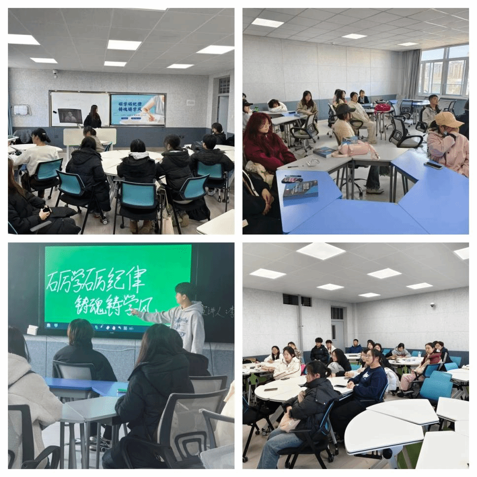 会上,各学院辅导员、班主任老师着重强调了学习态度和纪律性对于个人成长和未来发展的重要性,鼓励同学们要珍惜大学时光,努力学习专业知识,不断提升自己的综合素质。班会设置了互动环节,通过案例分析、小组讨论等多种方式,让学生们能够积极参与到学风建设中来,表达自己的观点和看法。会后,学生们深刻认识到学习对于个人成长和未来发展的重要性,也意识到了遵守纪律是维护良好学习环境、保障学习效果的基础,将以此次班会为契机,进一步加强自我约束和管理,努力提升自己的学习能力和综合素质。