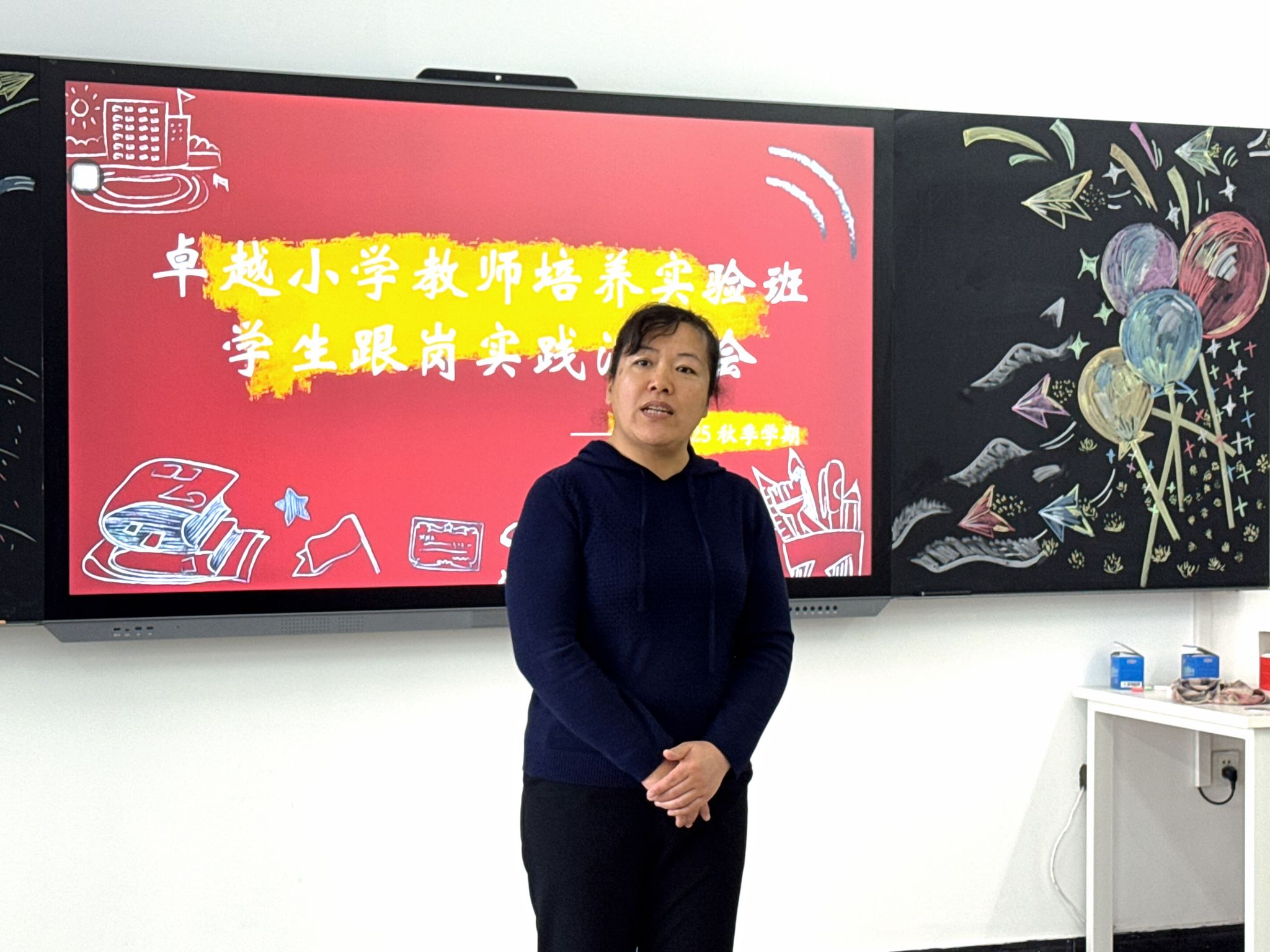 班主任秦平对本次汇报会进行了总结。她真挚地感谢了学校对卓越小学教师培养的有力支持与心血倾注,她表示,学生在实践中对资深教师的教学方法和教育技巧进行观察与学习的意义深远,并鼓励在场学生们于实践中思考,于思考中总结,将所学知识与实际践行相结合,形成自己的教学风格,实现自身素养的大幅飞跃。