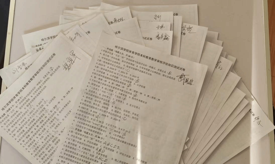 (文/潘昊鑫)为扎实推进新一轮本科教育教学审核评估工作,提升教职工对评估知识的掌握程度,3月2日,体育学院组织开展了《哈尔滨学院新一轮本科教育教学审核评估应知应会手册》考试,全院教职工积极参与,以考促学,为迎接审核评估做足准备。
