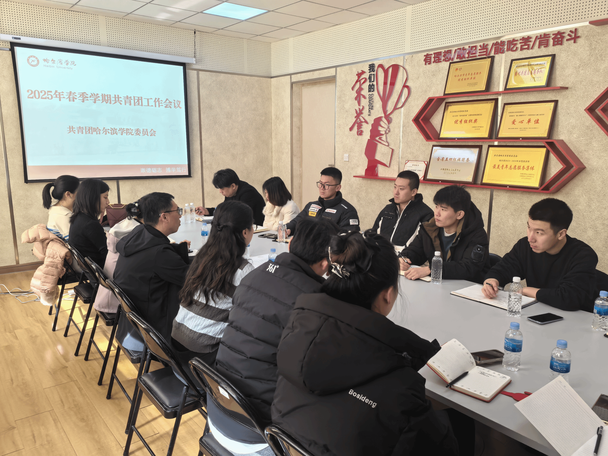 会议围绕聚焦、助力我校本科教育教学审核评估工作、哈尔滨学院第二次团代会前期筹备工作、2025届毕业生就业服务保障工作、2025届毕业生欢送晚会、“后亚冬时代”宣传工作、打造志愿服务品牌以及亚冬会志愿者总结表彰等共青团重点工作进行部署并提出具体工作要求。