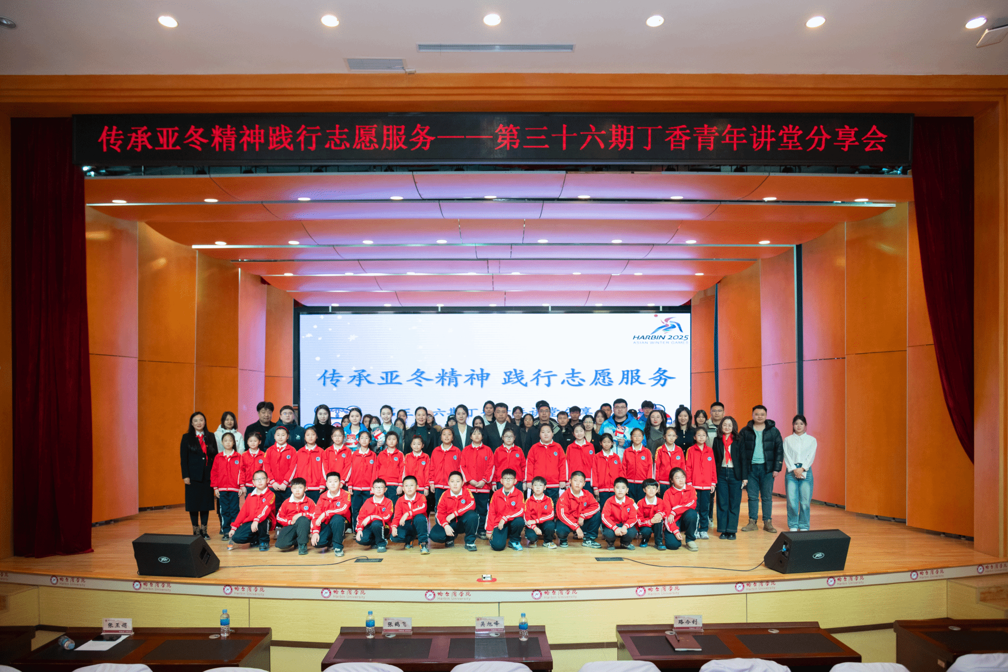 (文/张玉娟)志愿精神映照青春风采,服务社会彰显时代担当。3月7日,哈尔滨学院第三十六期丁香青年讲堂在小音乐厅成功举办。本期讲堂以“传承亚冬精神 践行志愿服务”为主题,讲述志愿者们在2025年第九届亚洲冬季运动会中的服务经历,展现新时代青年的责任与担当。校党委委员、副校长吴旭峰,团省委少年部副部长、黑龙江省少先队总辅导员张鹤飞,哈尔滨学院实验小学校校长赵文哲出席活动,校团委书记路今钊,副书记张玉娟,各学院分团委书记,哈尔滨学院实验小学校师生代表,校青年学生代表200余人参加本次活动。