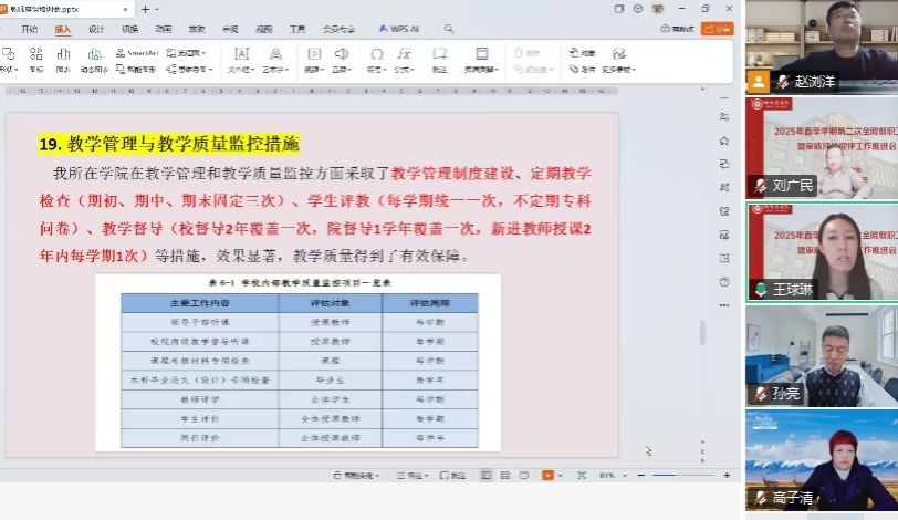 培训会上,审核评估联络员王球琳对《手册》内容进行全面梳理。她重点围绕审核评估基础知识、高等教育发展动态、校史校情及院史院情等内容进行讲解,帮助教师系统掌握核心内容。她指出,本次评估是学院深化内涵式发展的重要契机,要求全体教师将“学生中心、成果导向”理念融入日常教学,严格对照评估标准优化课堂教学、完善教学文档,并对专家线上听课及座谈准备工作进行重点部署。会议还系统介绍了学院教学质量监控体系,包括督导听课、学生评教、定期教学检查等环节,确保教学环节全链条质量可控。