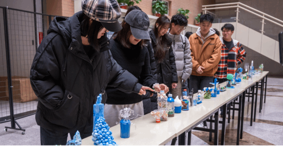 活动前期,学生党支部组织同学们利用课余时间收集废弃塑料水瓶,结合彩色黏土、铁丝等材料完成创作。参展的作品涵盖立体雕塑和互动装置等多种形式,作品《滴水成川》通过悬空水龙头造型模拟水慢慢流失的过程;作品《最后一滴水》用干裂黏土包裹的废弃水瓶警示水资源枯竭之后的场景。