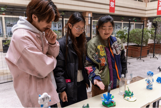展览当天,艺术与设计学院副处级辅导员郭鹏程老师表示:“工业废料重构水的诗意循环,材料反差强化了节水警示。以干涸水瓶与裂痕黏土构建双重隐喻,让环保理念更加直观。”一名学生代表表示:“通过动手创作,真正理解了保护水资源的意义,同时废旧材料也能成为传播环保理念的媒介。”