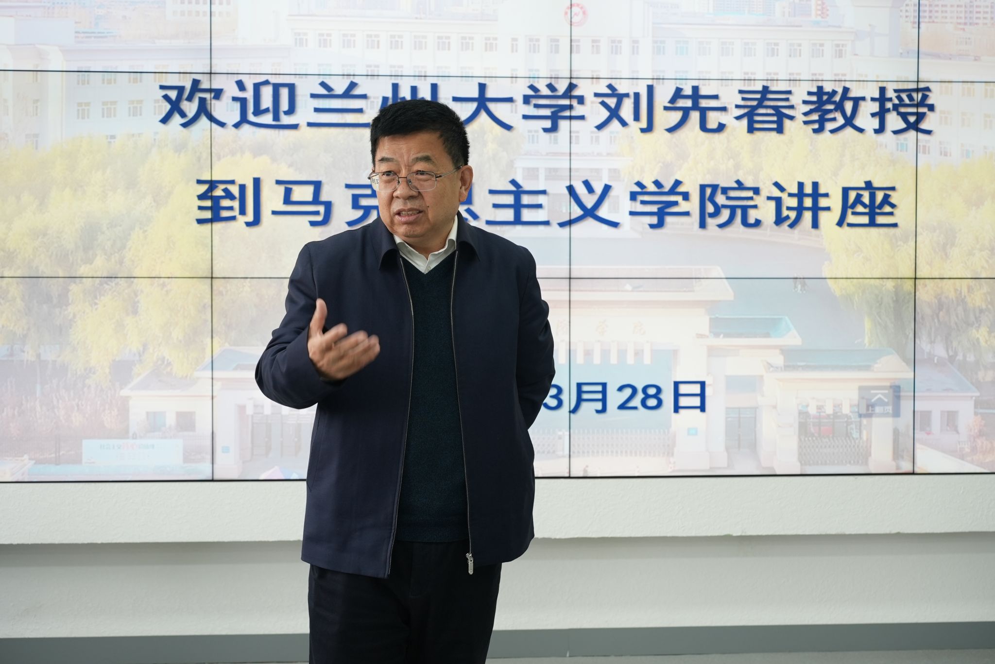 (文/李德刚)3月28日上午,中央马克思主义理论研究和建设工程首席专家、教育部高校思政课教学指导委员会副主任委员、甘肃省大中小学思政课教指委主任委员、兰州大学马克思主义学院刘先春教授来到我校马克思主义学院作题为《高校思想政治理论课高水平科研项目申报》的报告,该报告会为学校丁香大讲堂重要活动。学校党委书记孙钊、党委副书记李娜出席。