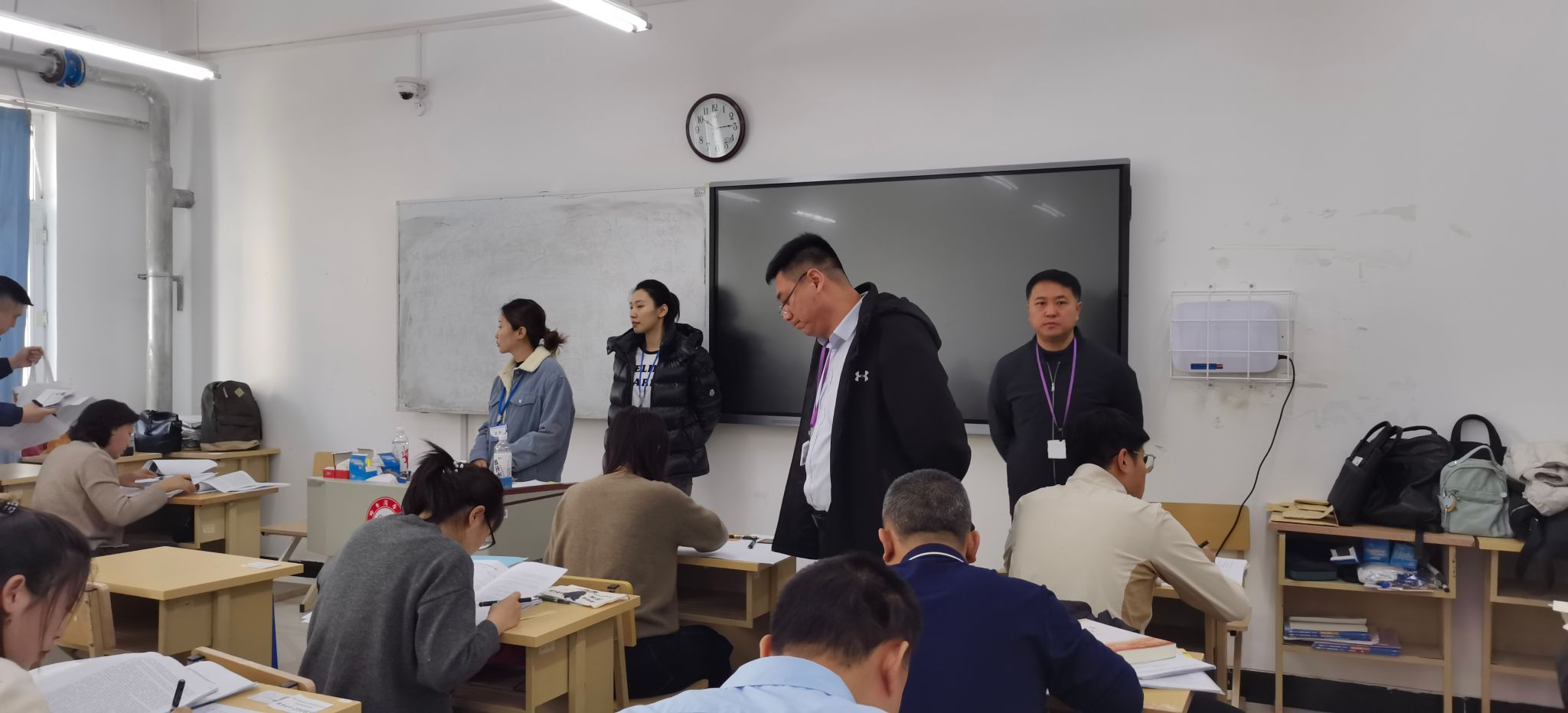 考试当天,中共哈尔滨市委宣传部宣传教育处处长郭淼来到现场指导工作,考场秩序井然,考生严格遵守考试纪律,按时入场,认真作答。监考人员严格履行职责,严格执行考试程序,确保考试公正、公平。考试过程中,考务人员及医务人员密切关注考场动态,及时处理突发状况,为考试的顺利进行提供了有力保障。
