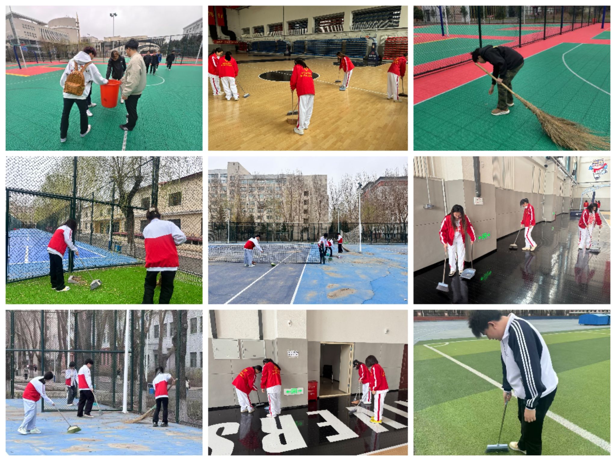 活动中志愿者们遍布校园的各个角落,俯身探寻平日里容易被忽略的“卫生死角”。教学楼内,他们踮脚擦拭玻璃窗,让阳光透过洁净的玻璃洒落,桌椅在抹布的翻飞中褪去尘埃,重现清亮底色;宿舍楼里,大家深入楼道转角地带,清运阳台积灰的角落,归置乱摆的生活用品,让居住空间在规整中透出温馨;运动场上,志愿者们弯腰清扫跑道缝隙间的落叶,捡拾草坪边缘的杂物,让塑胶跑道重现鲜艳色泽。从楼宇到场馆,从室内到户外,志愿者们以双手为画笔,为校园环境添上美丽注脚,也用劳动为师生们创造了更舒心的学习生活空间。