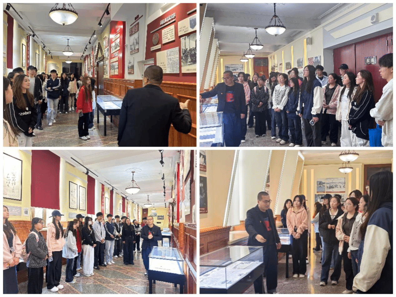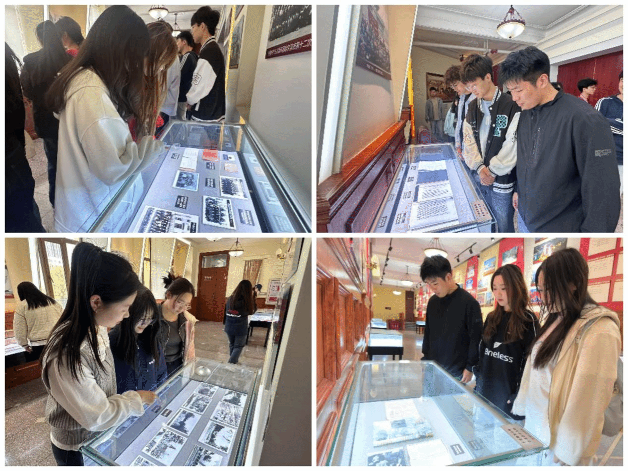 活动伊始,在讲解员的引导下,同学们依次走进“沧海横流、青年崛起”“信仰为舵、勇立潮头”“艰难困苦、曲折前行”“不忘初心、牢记使命”“沐浴在党的阳光雨露下”五大主题展厅,透过图片展板、文献资料、历史实物等展陈形式,重温了从五四运动的激情澎湃,到新中国建设的无私奉献,再到改革开放的勇毅探索的壮阔历程。一幅幅历史画面、一件件珍贵实物,串联起近百年哈尔滨青年运动的脉络,让同学们深切感悟其在不同历史阶段的深远影响与精神内涵,在回望峥嵘岁月中汲取奋进力量。