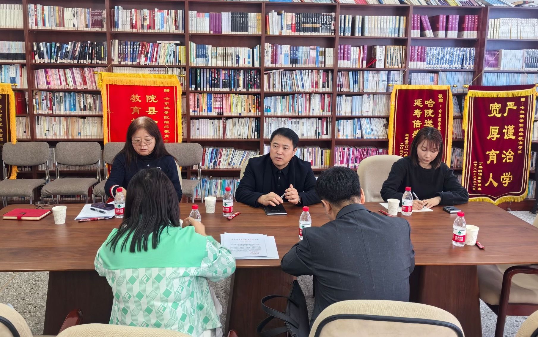 吴立刚代表学院对黑龙江省职业学院继续教育同仁的到来表示热烈欢迎,并就非学历教育管理与创新方面分享了做法和经验。王英侠对我校继续教育学院的热情接待表示感谢,双方重点围绕非学历教育制度设计、组织架构优化、收入分配机制、绩效激励政策及政策平衡等议题展开深入探讨,并就各自工作岗位中的做法、问题进行了充分的交流。