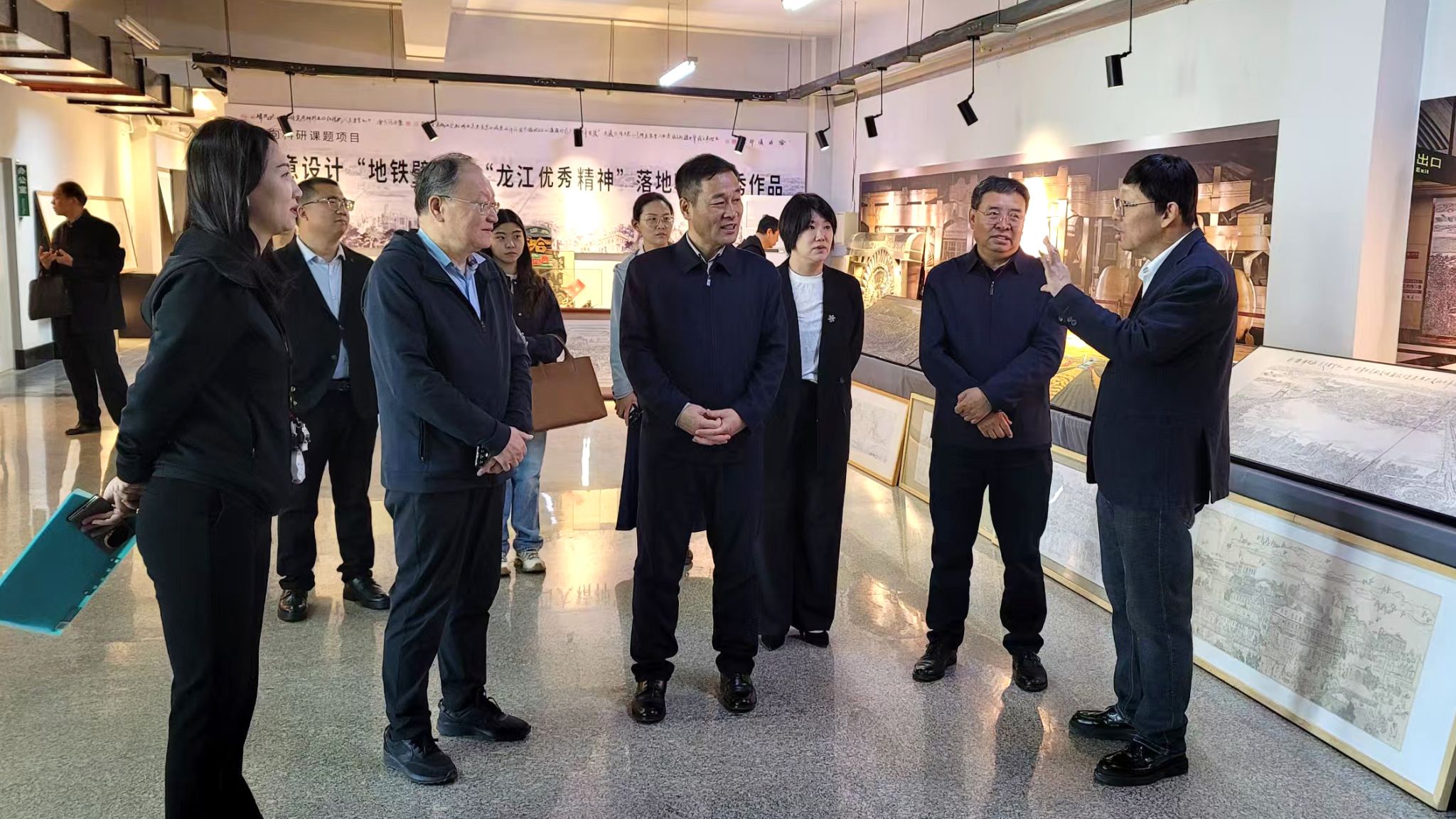 会议适逢哈尔滨城市精神提出20周年,旨在深入挖掘哈尔滨的历史文化底蕴,弘扬城市精神,推动文化创意设计产业发展,为城市发展注入新活力。参会代表首先观看了黑龙江优秀精神文创展览馆馆藏作品、《百年华章》《画说哈尔滨》连环画、哈尔滨地铁《哈尔滨印象》《三大动力、国之重器》壁画、《百年哈尔滨历史》油画等展区和“冰凌瓷”陶艺、“丁香花”非遗、“冰版画”冰雪艺术文创工作室。艺术与设计学院教师刘恒伟、程法伟、祝劲松、杨眉分别进行了讲解和哈尔滨地域特色文创产品案例分析,使大家进一步加深了对哈尔滨学院文化创意设计研究与实践工作的认识和了解。
