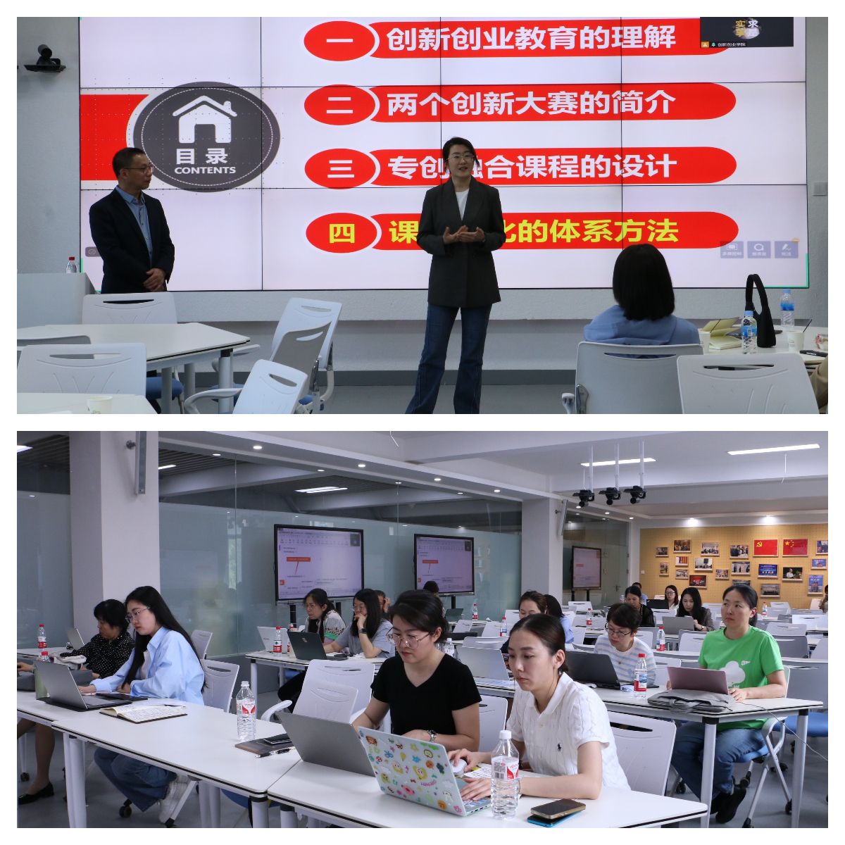 本次师资培训分别邀请了哈尔滨工业大学高继慧教授、中国管理科学研究院谢强教授、黑龙江八一农垦大学王畅教授、黑龙江大学李海东教授、我校创新创业学院郭林副院长等五位国内双创教育领域专家,他们分别结合各自研究领域做了相关主旨报告。本期培训主要围绕“专创融合的途径与方法”“专创融合课程建设的实践探索”“专创融合视域下课程与竞赛的体系化方法”“四创融合、任务驱动、双轨协同”地方高校创新创业课程建设模式研究与实践”、“AI+专创融合的课程建设内容与方法”等5个模块,详细讲解了专创融合教学的先进理念,分享了专创融合教学的经验做法,以及教学目标和评价目标。