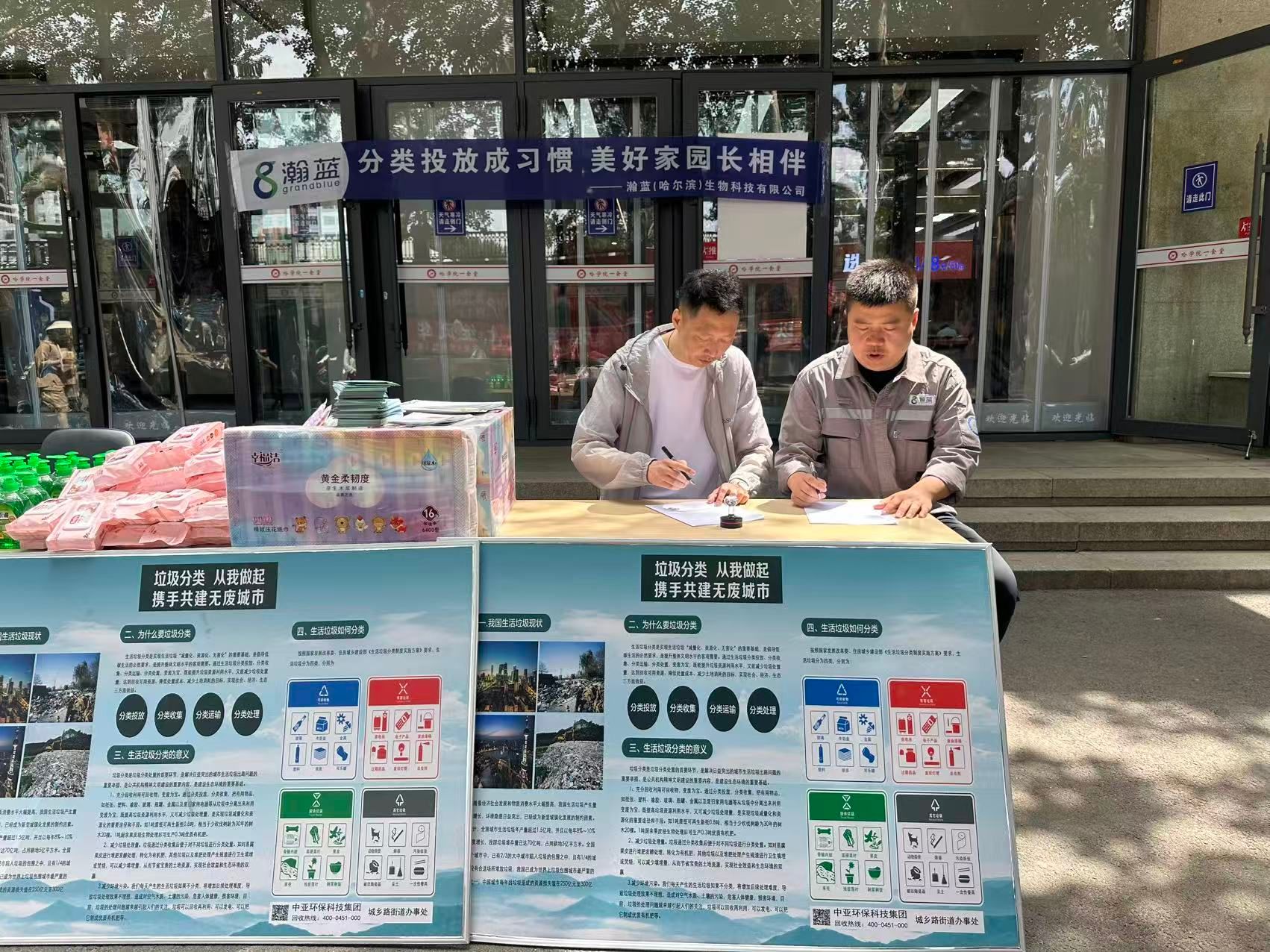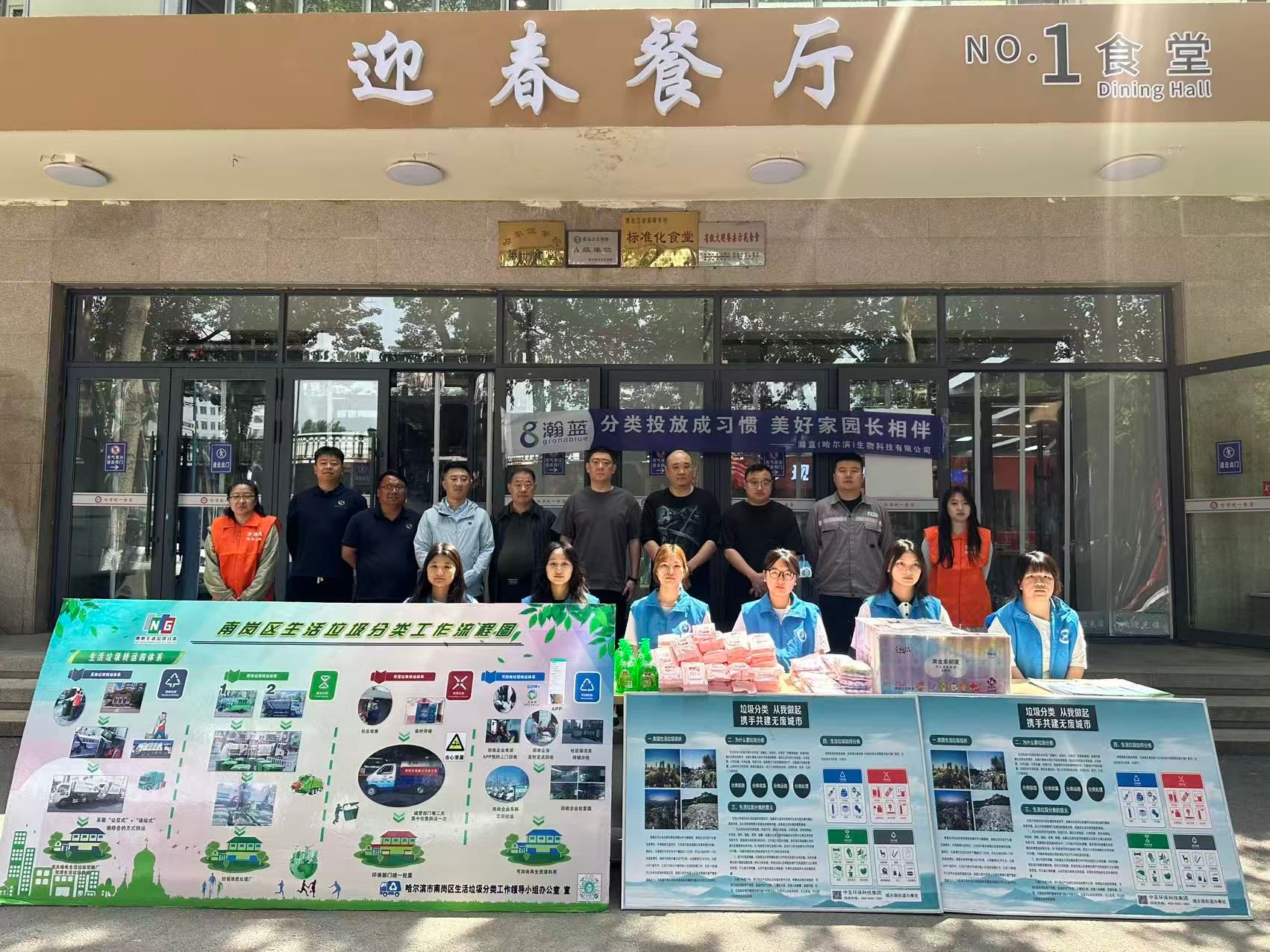 活动在哈尔滨学院校主校区一食堂门前开展,旨在通过丰富多样的形式,向师生们宣传低碳环保、垃圾分类等知识分享。