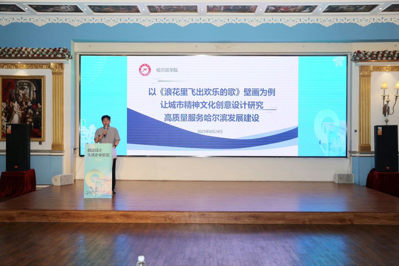 我校文化创意设计研究中心副主任高亮参会并进行了主旨演讲:以《浪花里飞出欢乐的歌》壁画为例,让城市精神文化创意设计研究高质量服务哈尔滨发展建设。